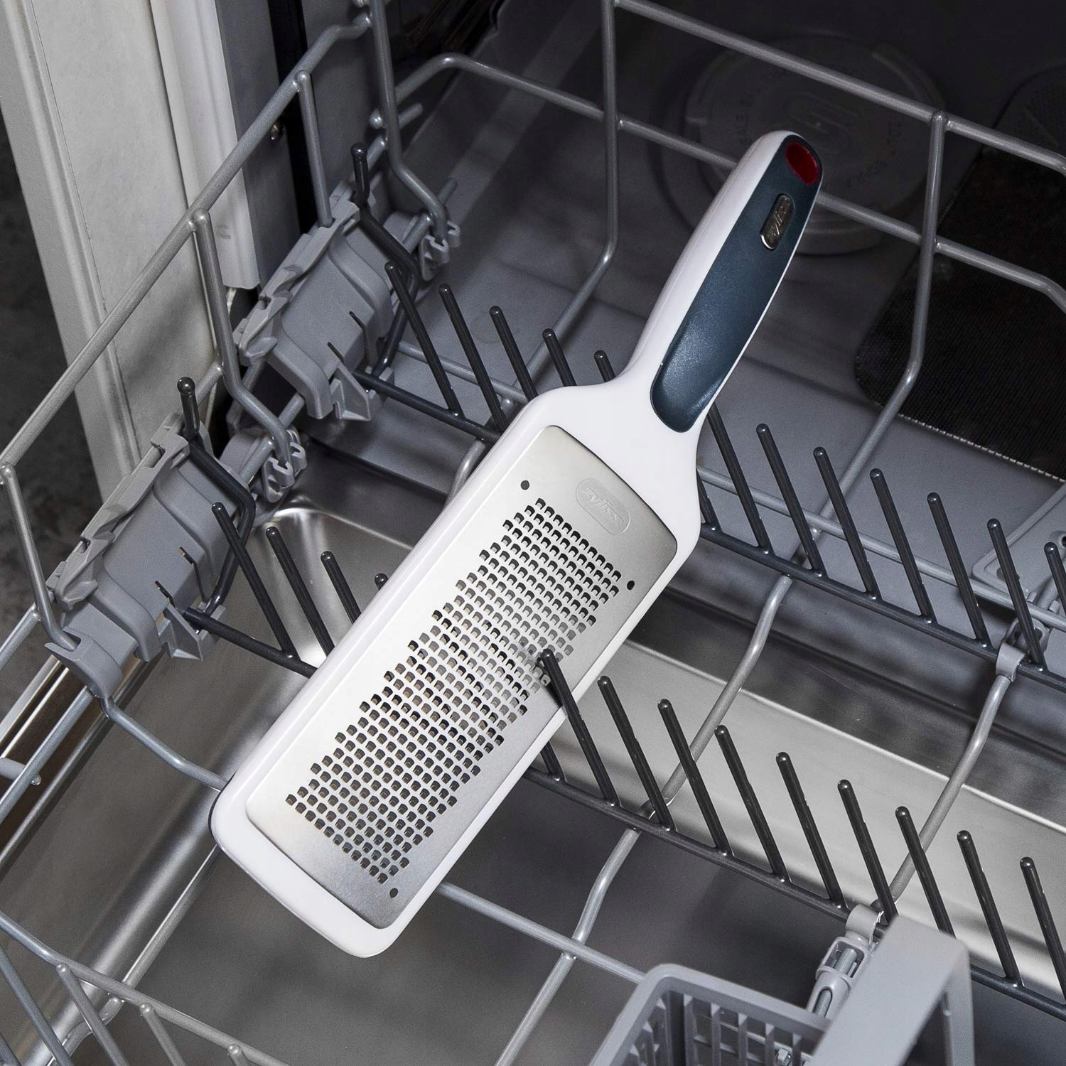 Терка Zyliss SmoothGlide оснащена стальными лезвиями, заточенными в кислоте, что делает терку исключительно острой и долговечной.