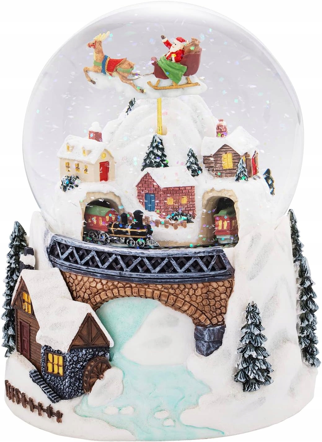 СНЕЖОК С САНТА-РОЖДЕСТВЕНСКИМ СВЕТОДИОДНОЙ МУЗЫКАЛЬНОЙ ШКАТУЛКОЙ С ВРАЩАЮЩИМСЯ ПОЕЗДОМ