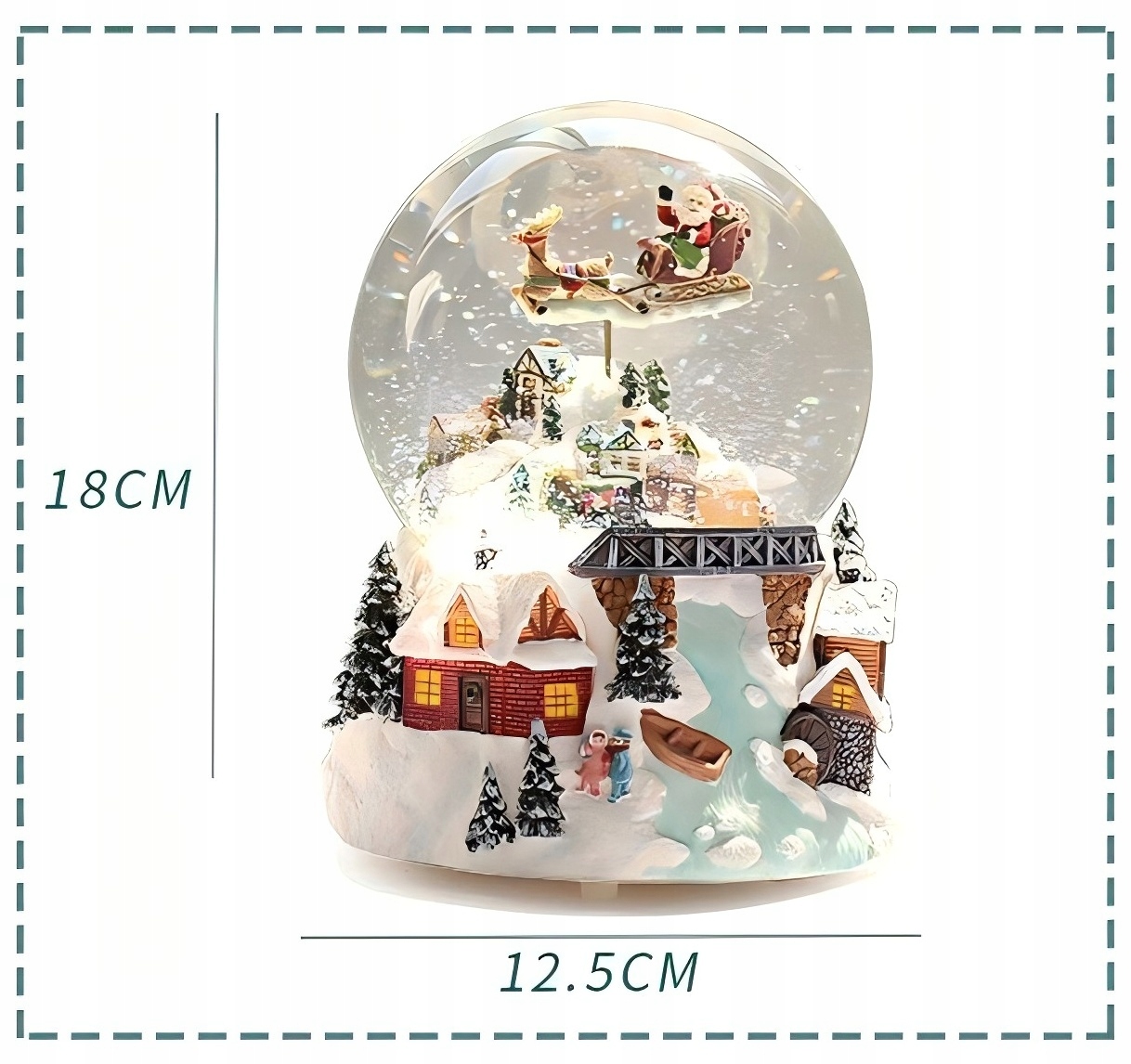 - Мы желаем вам традиционного счастливого Рождества с нашим стеклянным снежным шаром с традиционной рождественской сценой - Санта-Клаус на санях, летящих над тихая деревня.