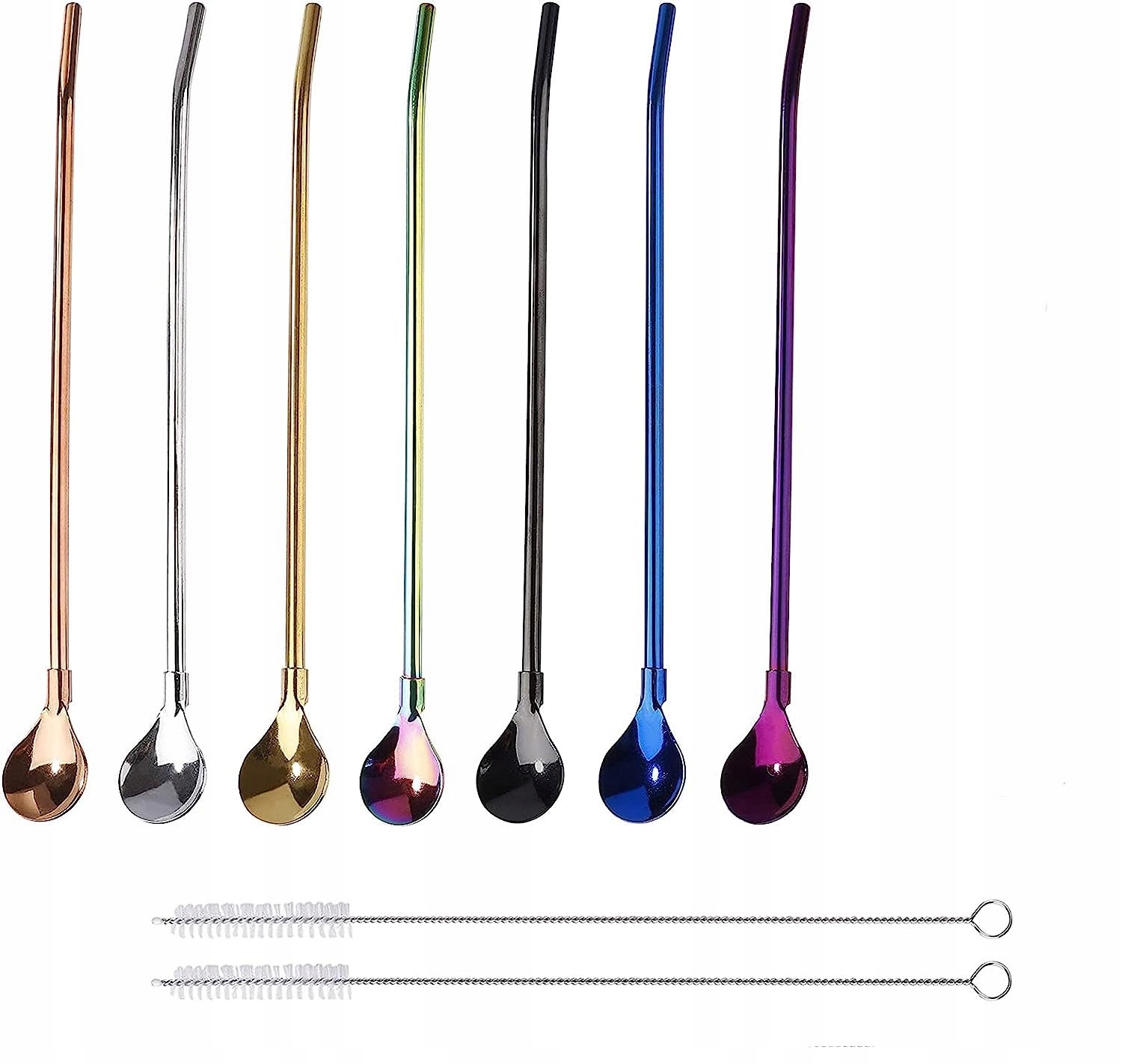 【Ложка из нержавеющей стали с соломинкой】В набор соломинок из нержавеющей стали входят 7 разноцветных соломинок из нержавеющей стали с ложкой и 2 кисточки. Длина 220 мм, внешний диаметр 5 мм