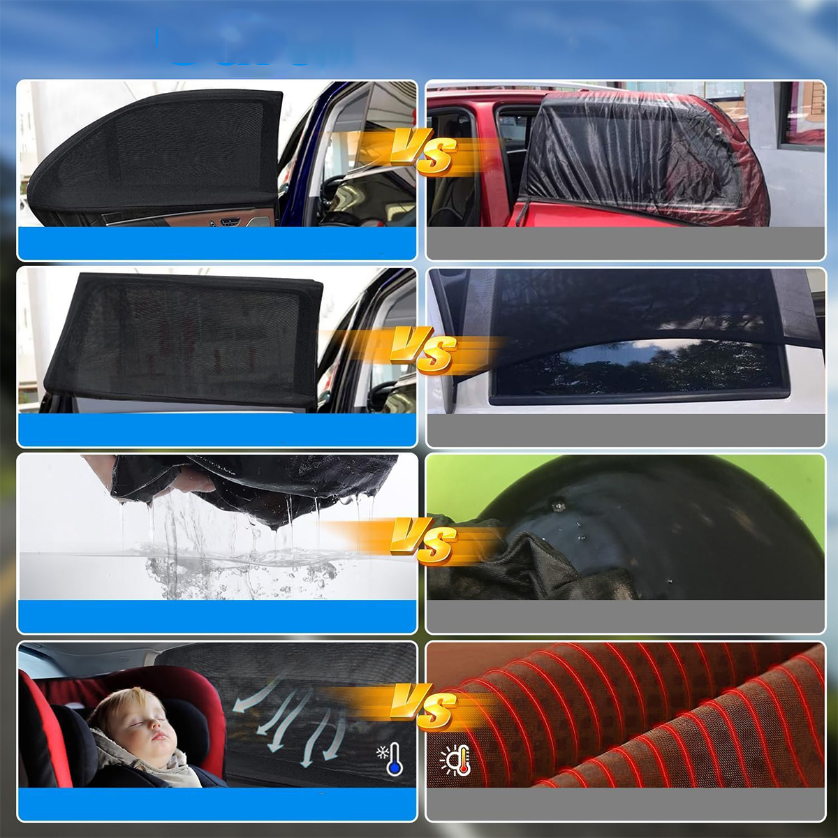 🚗【 дышащий и удобный солнцезащитный крем с полной крышкой с двухслойной сеткой, которая полностью дышащая и прилипает к раме стакана автомобиля. Благодаря этому вы можете свободно открыть и закрыть стекло, насладиться ветром снаружи и удобно восхищаться ландшафтами в тени. Наслаждайтесь прохладным и удобным интерьером, и в то же время замедляйте процесс старения внутренней части автомобиля.