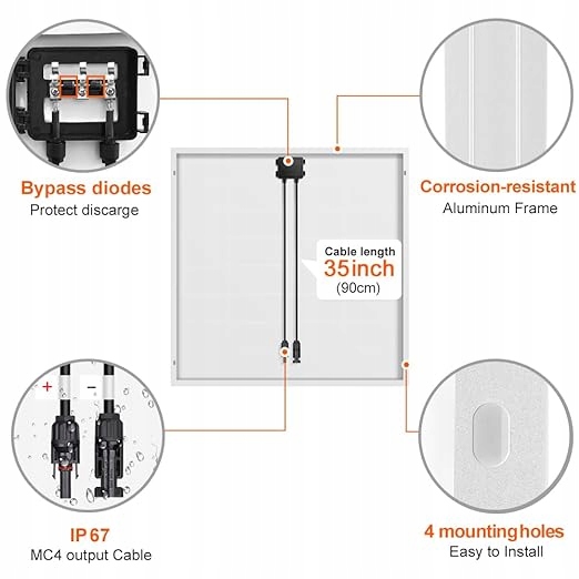 долговечный и долговечный: поверхность из упрочнения солнечного стекла ESG с покрытием, устойчивыми к погодным условиям; Коррозионная алюминиевая кадр