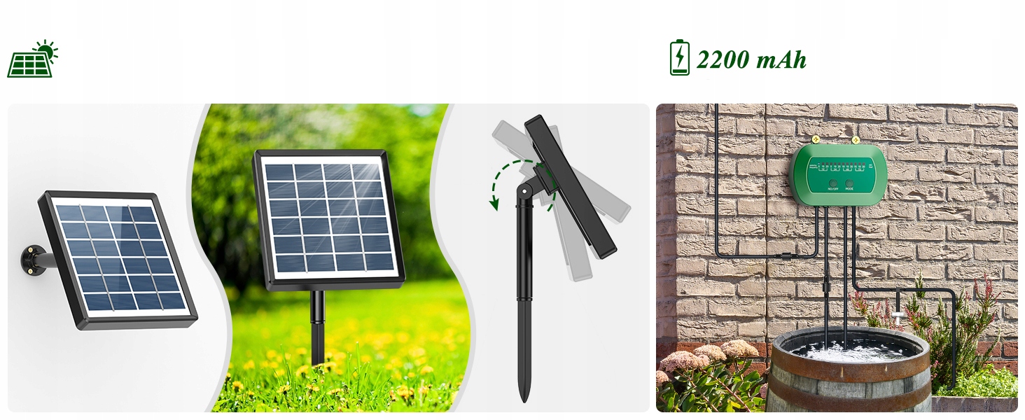 - Солнечные системы орошения оснащены датчиками уровня воды.