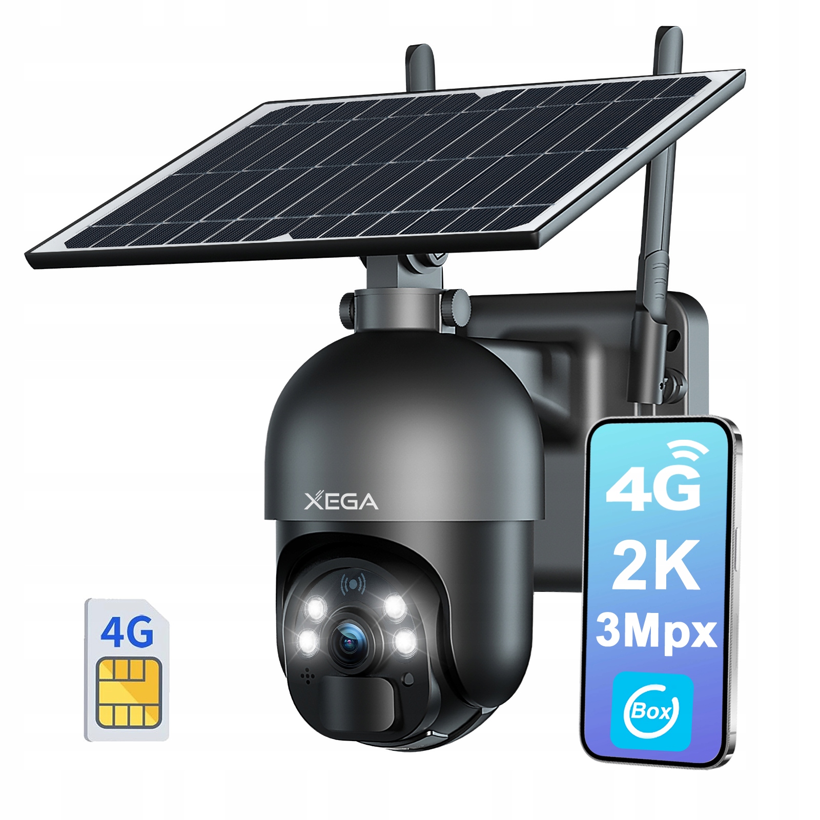 XEGA 3G/4G LTE Солнечные солнечные камеры 355 °/95 ° 2K 3MP 4X IP66 CYTER Zoom с SIM -картой включены