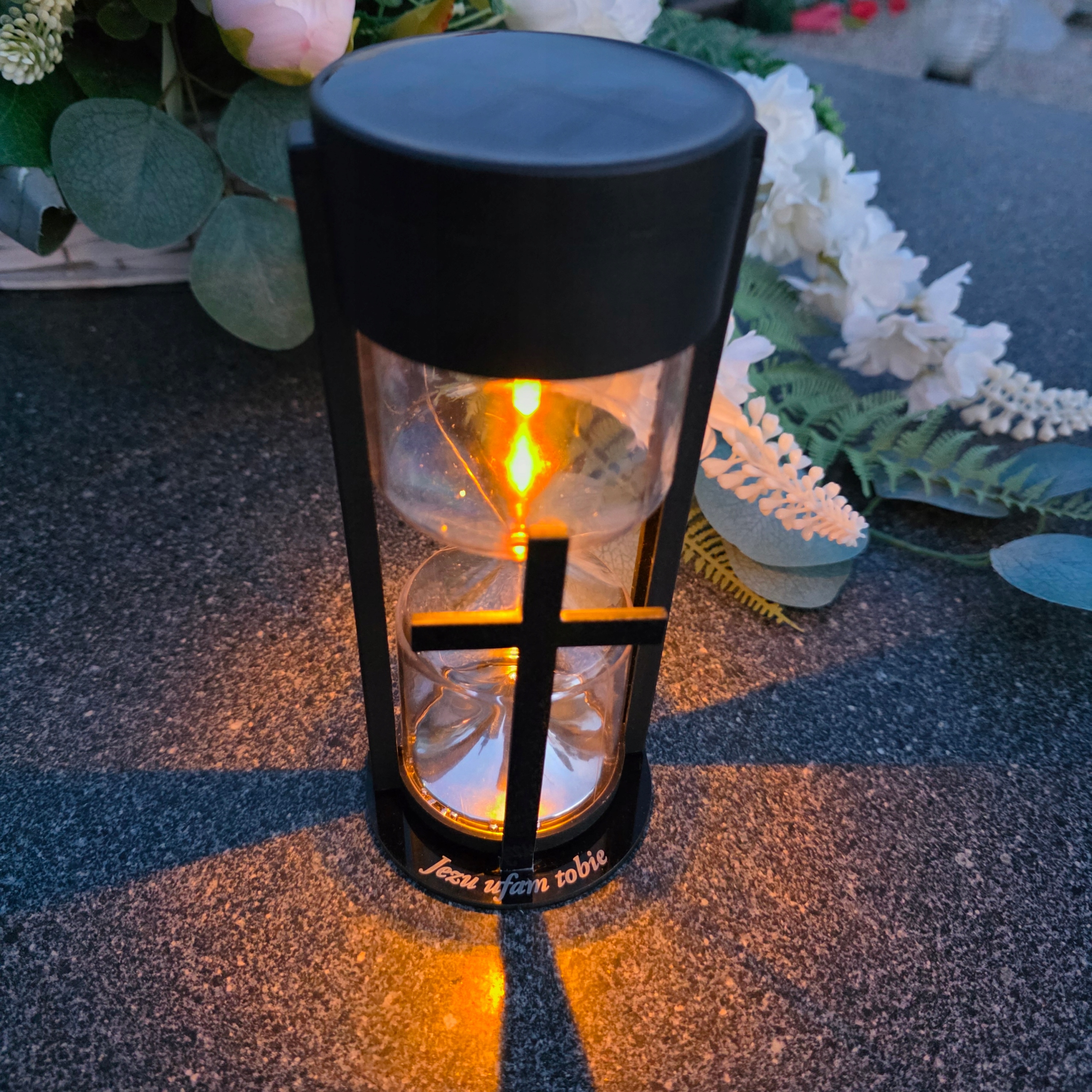 Солнечная лампа Znicz на современной могиле, вдохновленная классикой с золотым крестом