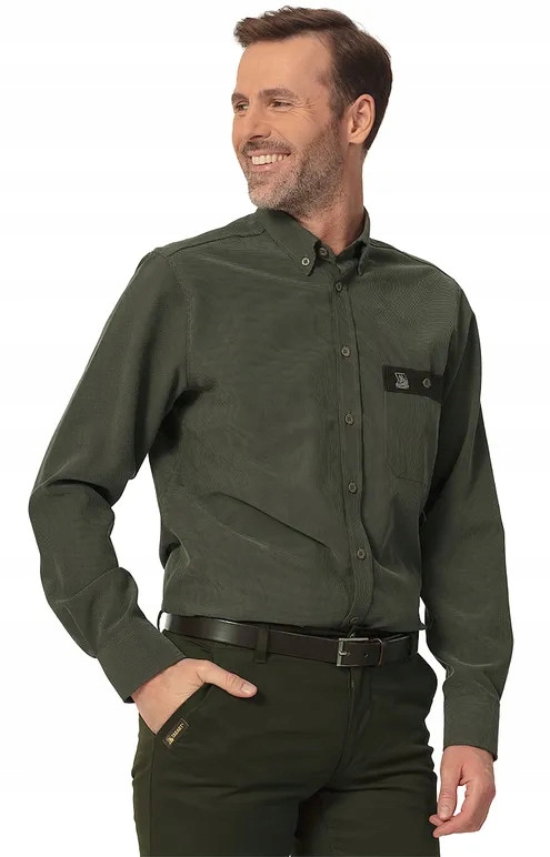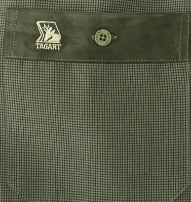 Зеленая рубашка. На левой груди карман с замшевой отделкой и вышитым логотипом Тагарт. Манжеты и воротник застегиваются на пуговицы. Сзади имеется петелька, за которую можно повесить рубашку на крючок. Мужская рубашка также доступна в версии с короткими рукавами - TAGART VERMONT SHORT SHIRT.