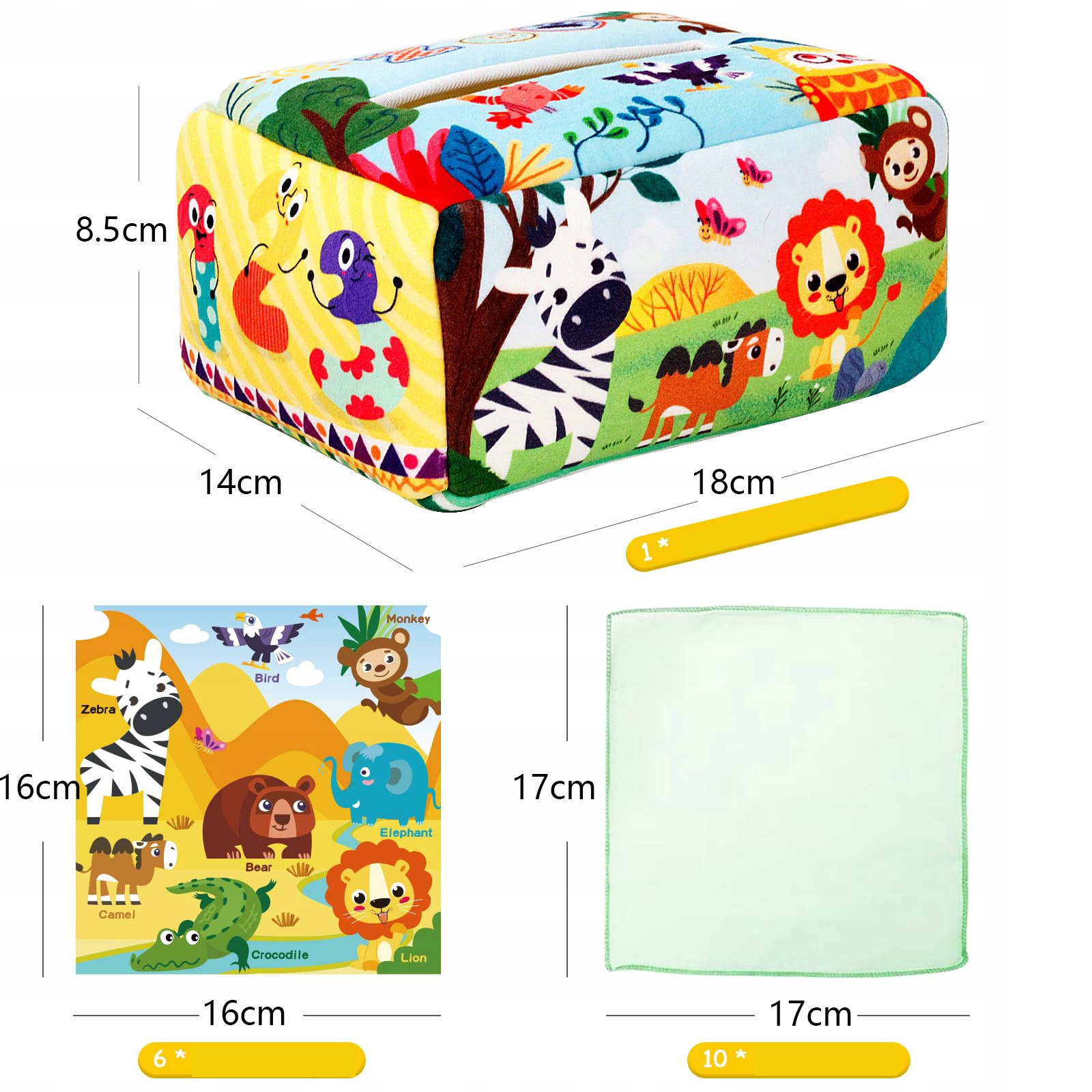 【Портативный и универсальный】 Компактный дизайн образовательной коробки для носовых платок делает его идеальным для развлечений в путешествиях. Независимо от того, находитесь ли вы дома или посещаете друзей, эта игрушка дает непрерывное веселье. Для подарка】 коробка для младенцев с материалом сочетает в себе радость и просветление с изяществом. Это трогательный выбор для подарка для таких случаев, как детский душ, Рождество и день рождения