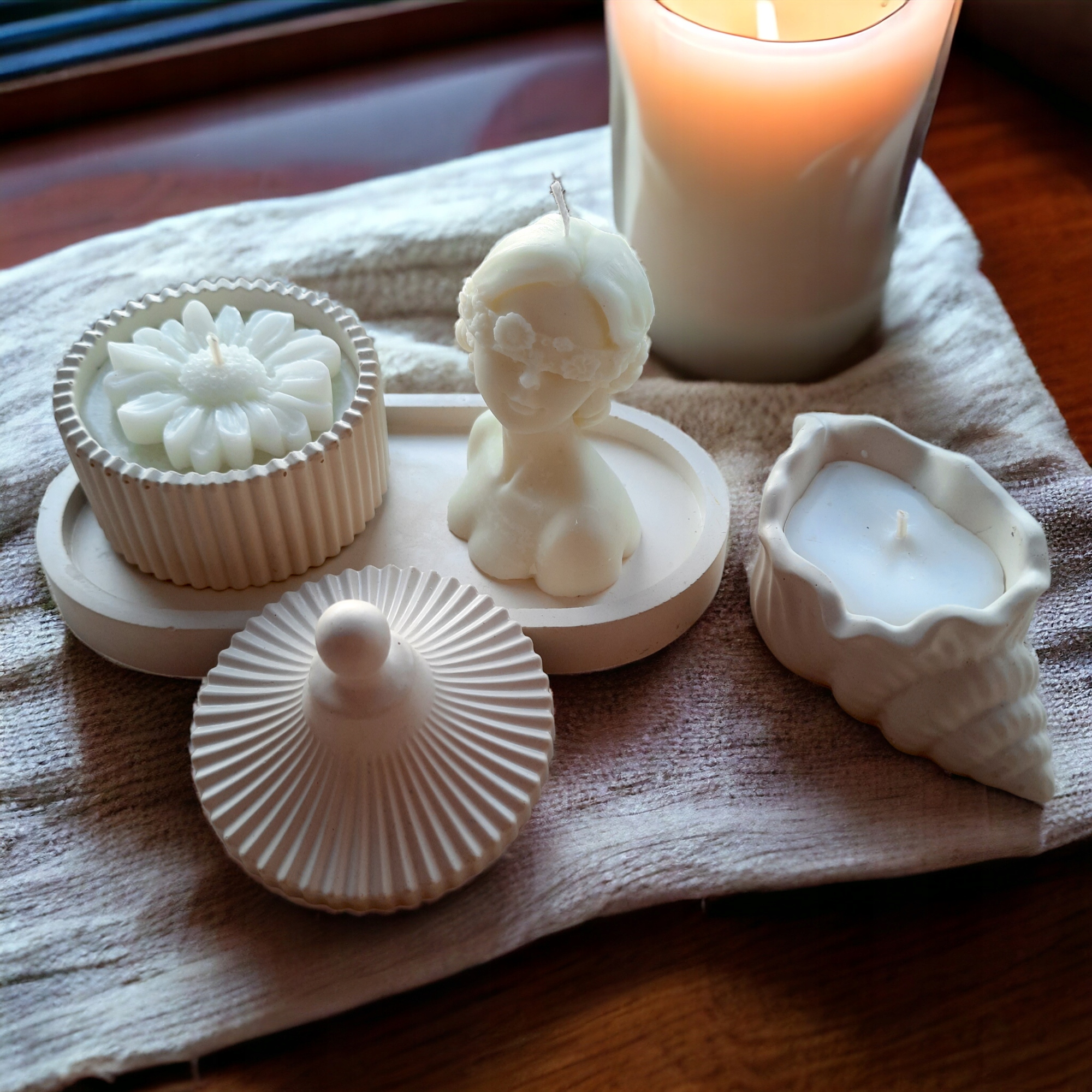 Третья свеча выполнена в форме морской раковины. Ее изящная форма и нежный аромат придают интерьеру изысканность и гармонию, создавая неповторимую атмосферу отдыха.