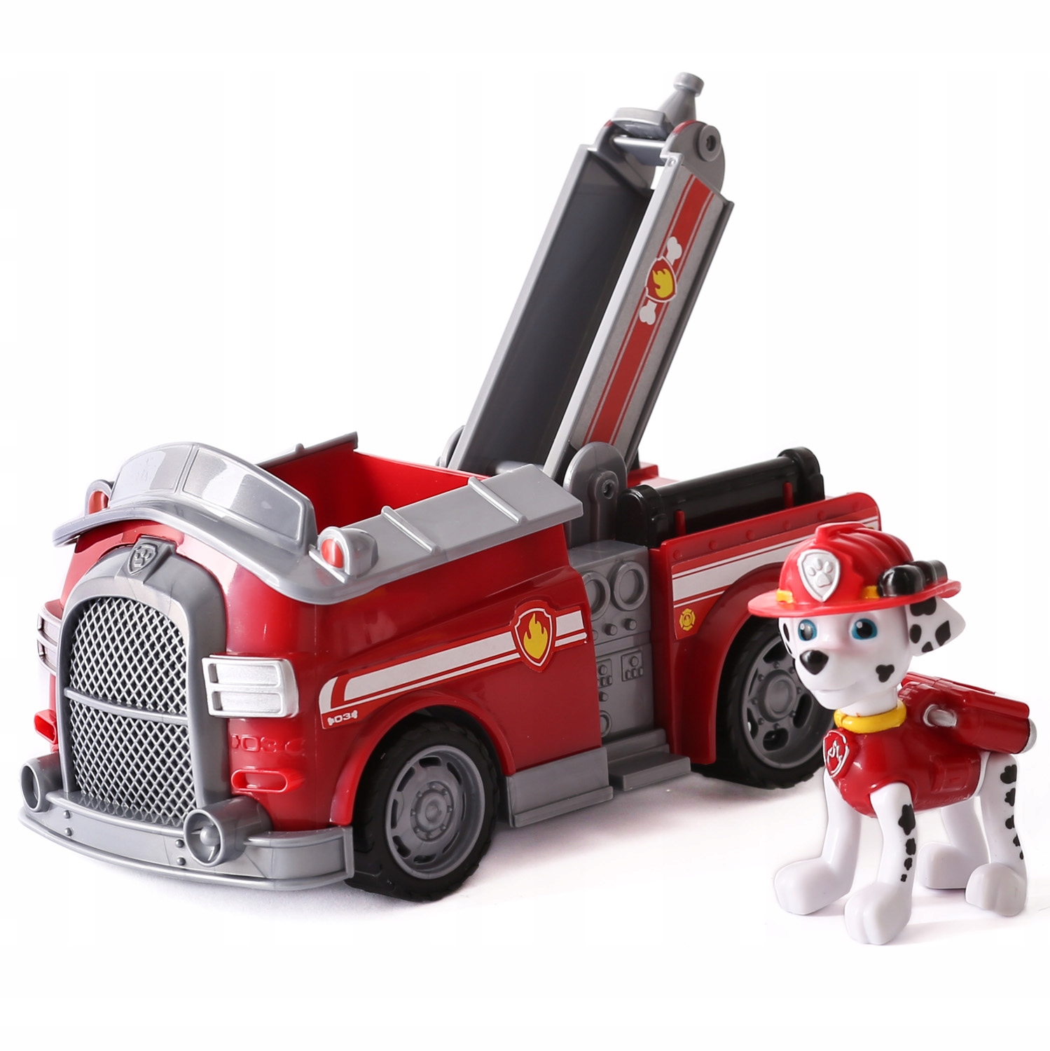 Набор состоит из Маршалла, верно воспроизводимого далматинского героя. У него красная форма и шлемы пожарного. Его незаменимым атрибутом является большая красная пожарная машина с подвижной бумом.