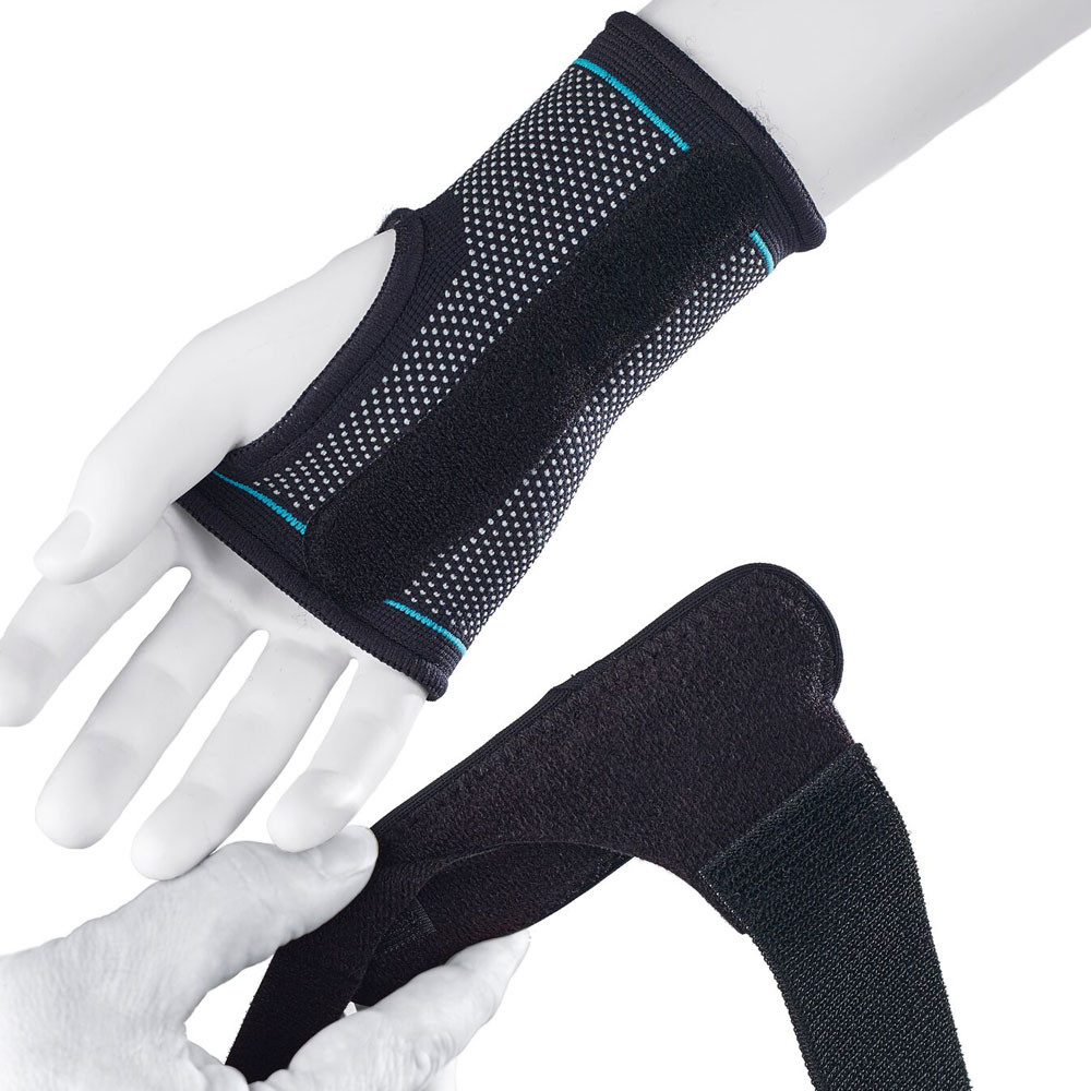 - Компрессионная, бесшовная, давящая лента с алюминиевым усилением, стабилизирующая запястье.