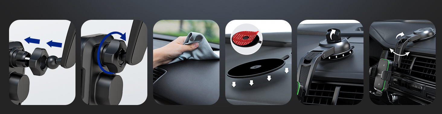 Этот интеллектуальный автоматический держатель для телефона с функцией быстрой индуктивной зарядки 15 Вт и тремя способами крепления в автомобиле. Обнаружив ваш телефон, он автоматически заблокирует его и подстроится под размер телефона, чтобы выровнять зарядную катушку, что устраняет необходимость ручной настройки.