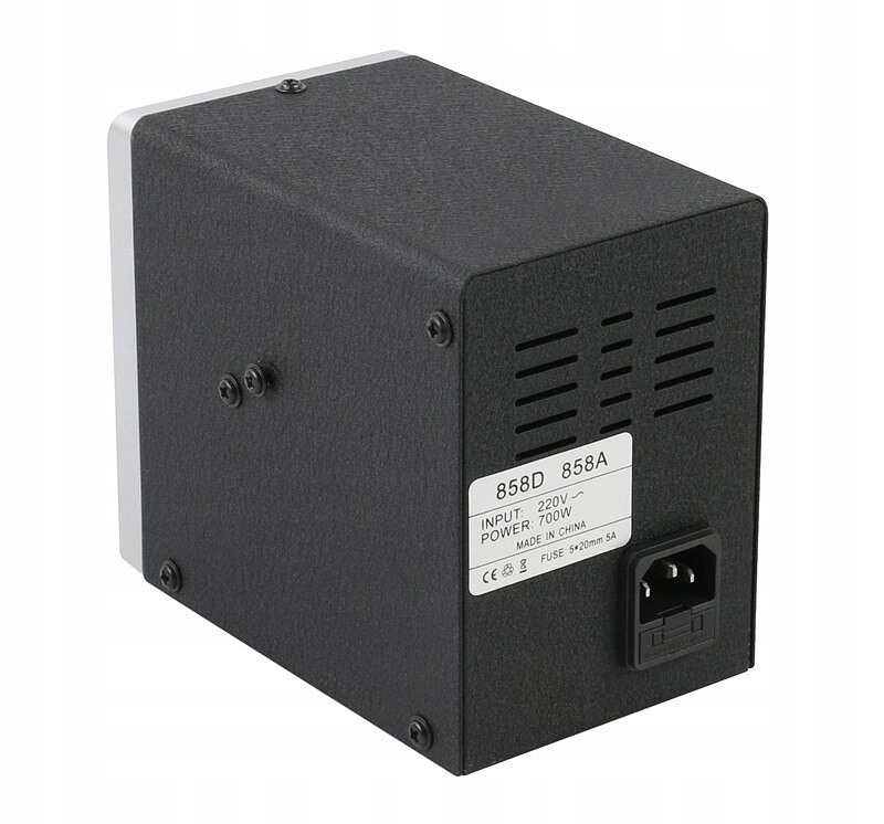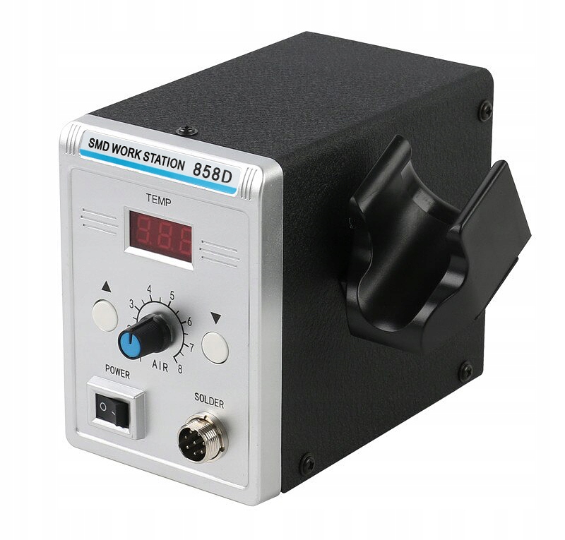 Hot Air Welder 858d с 700W - компактная станция Hotair of Universal Destinum . Станция может использоваться как для пайки в диапазоне электроники , так и, например, Для сварки пластмасс . Эта модель станции очень универсальна как для хобби, так и для продвинутых пользователей .