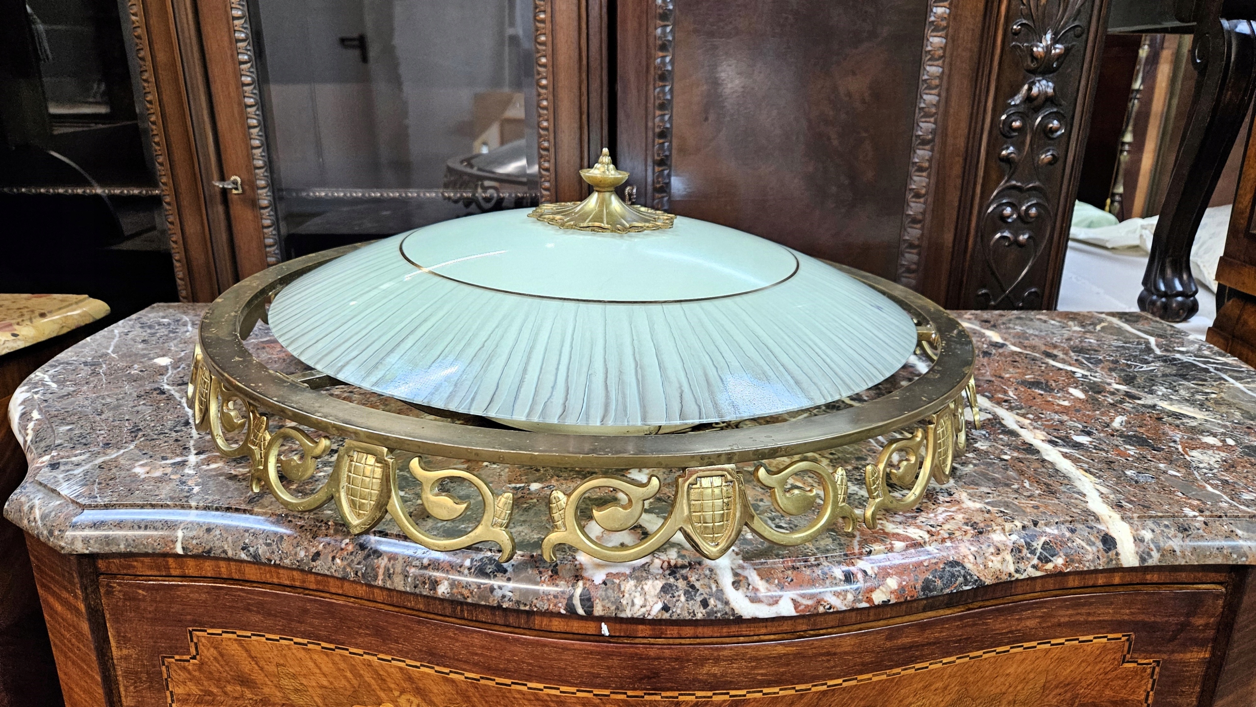 Stara Ładna Lampa PLAFON Mosiądz Klosz Szkło roz. Duży .