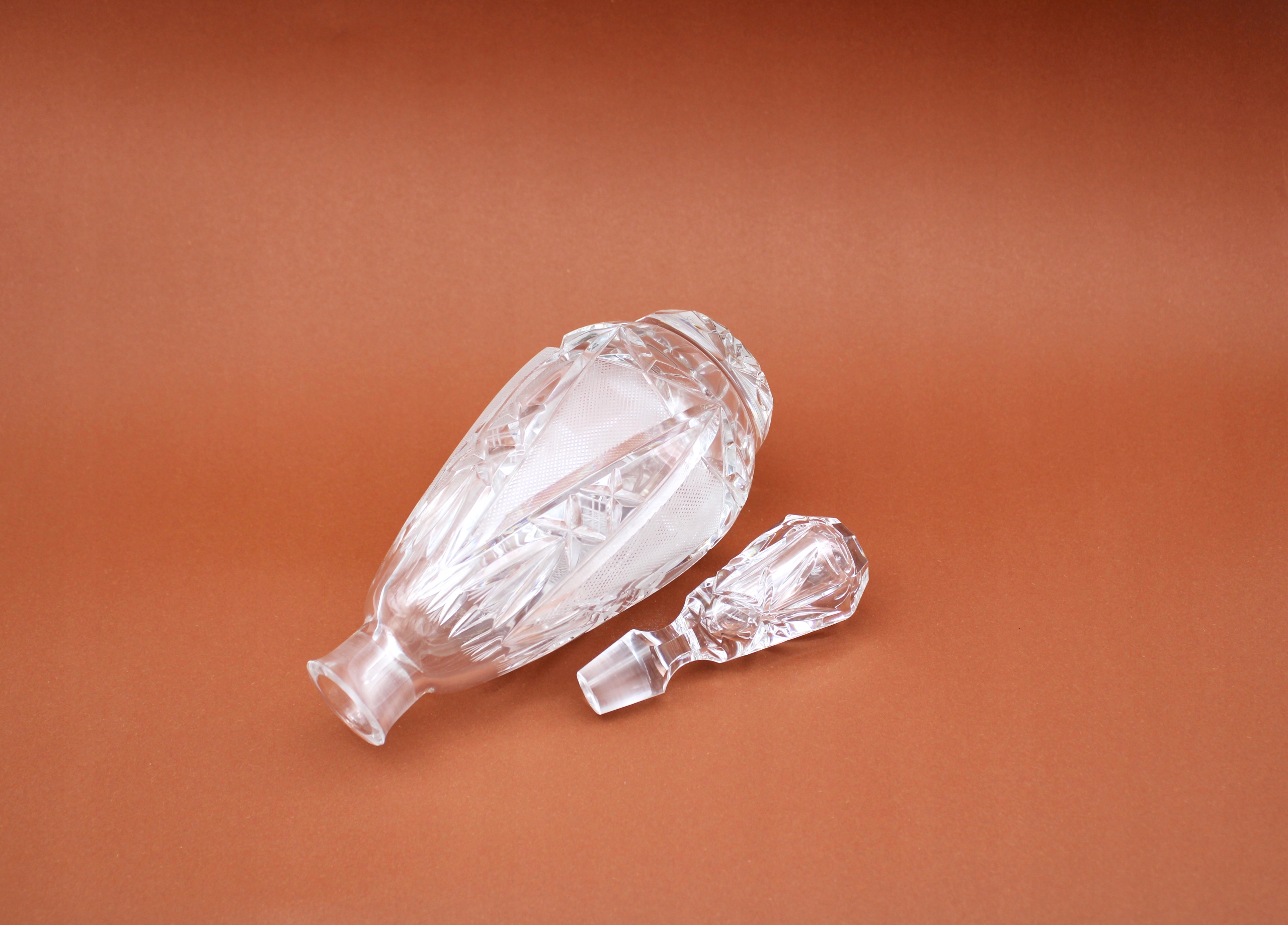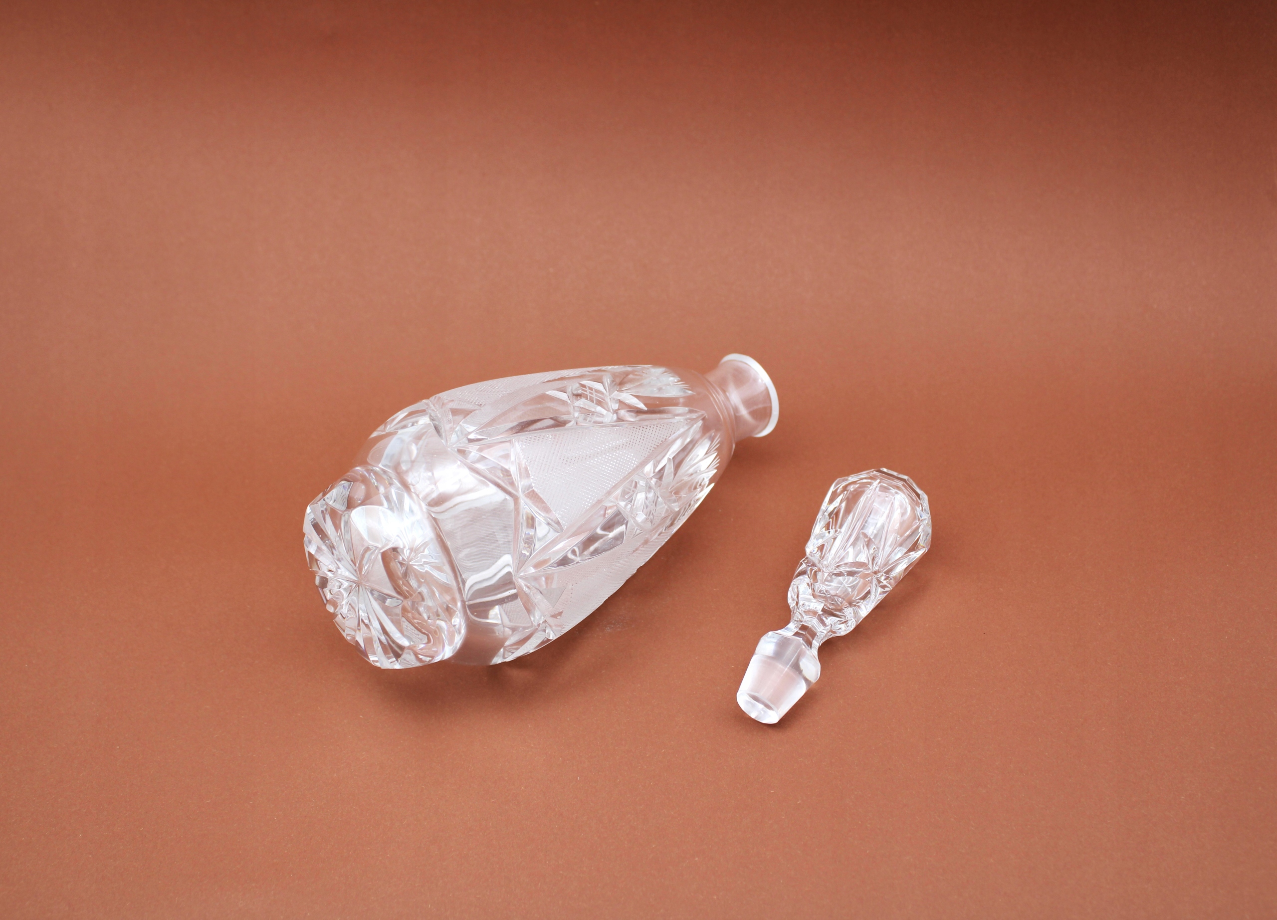 STARA CIĘŻKA KRYSZTAŁOWA KARAFKA LAUSITZER GLAS RĘCZNIE SZLIFOWANE