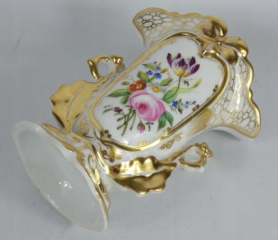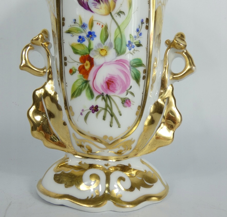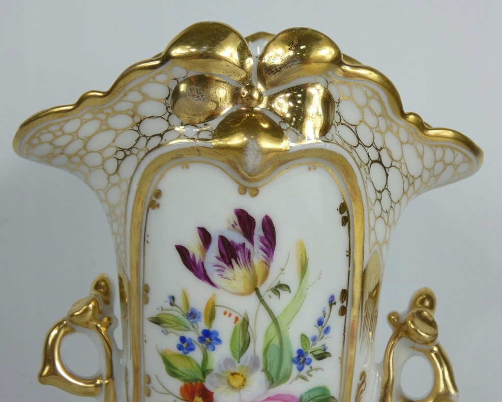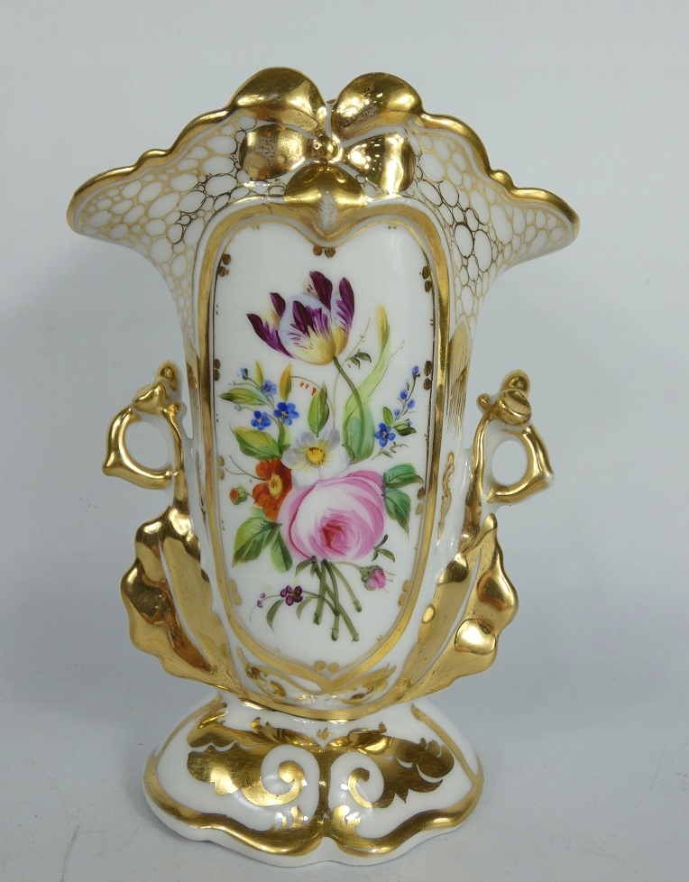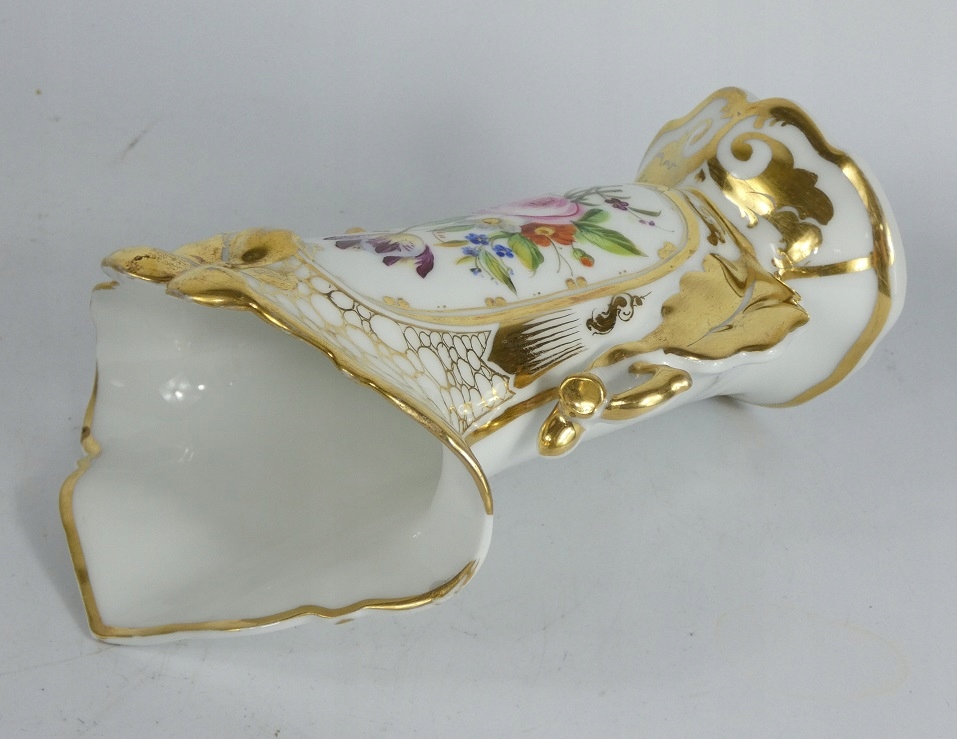 Старая фарфоровая ваза окрашенная цветы богатые позолочни