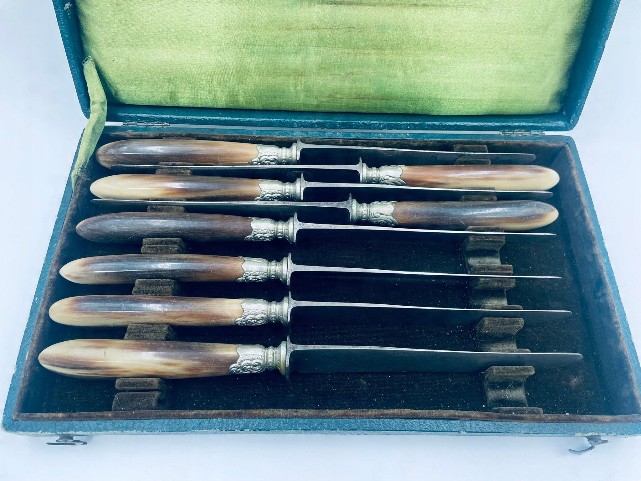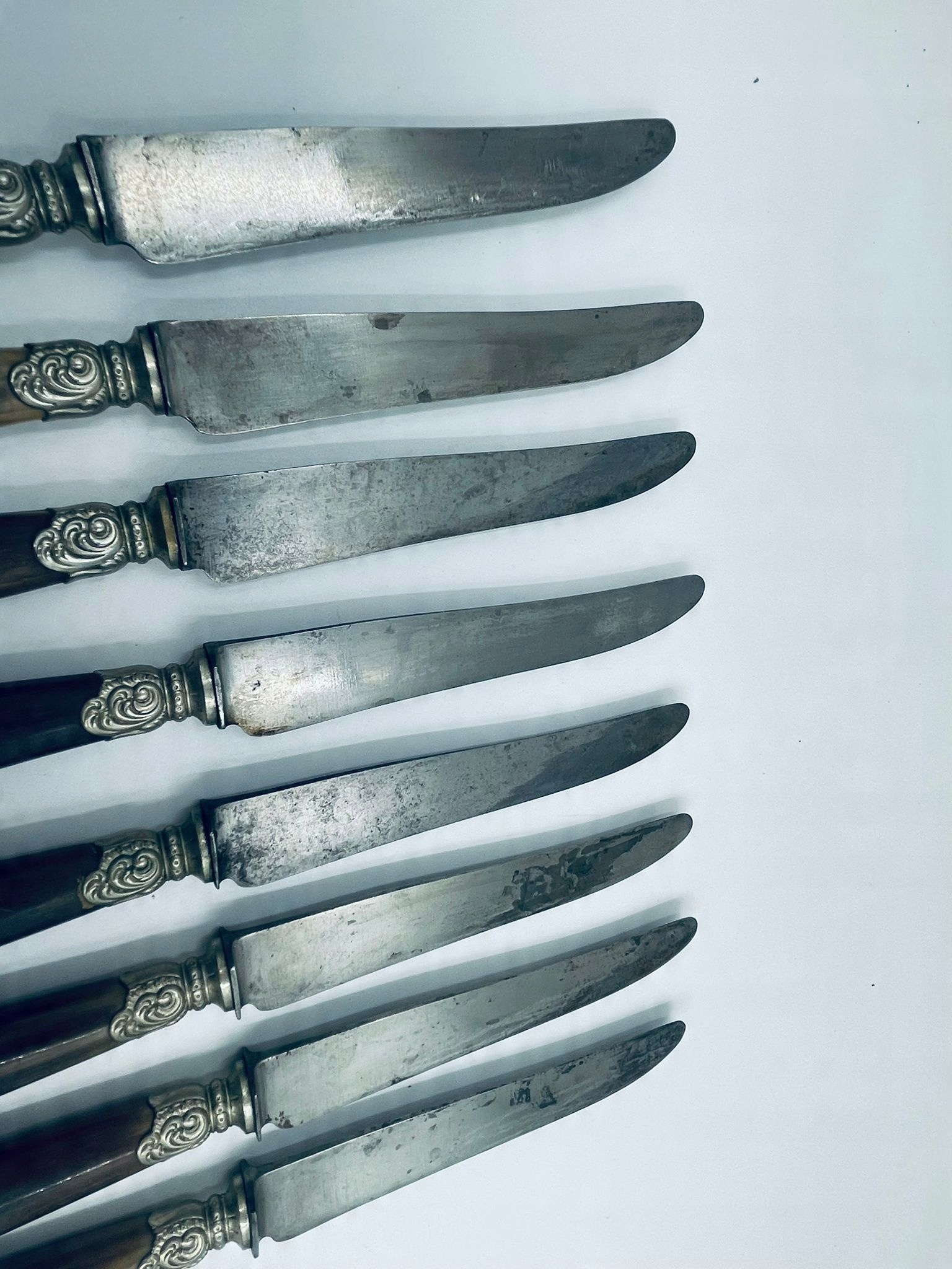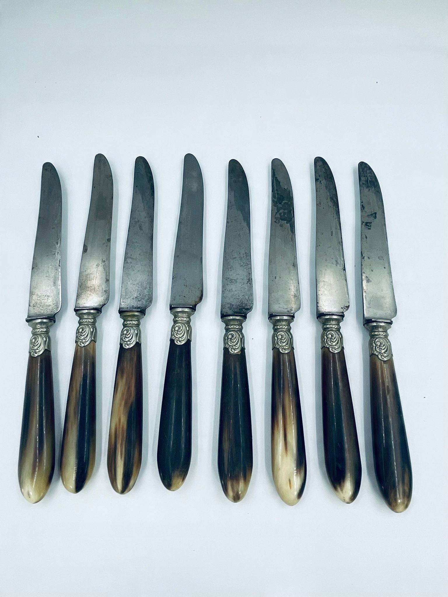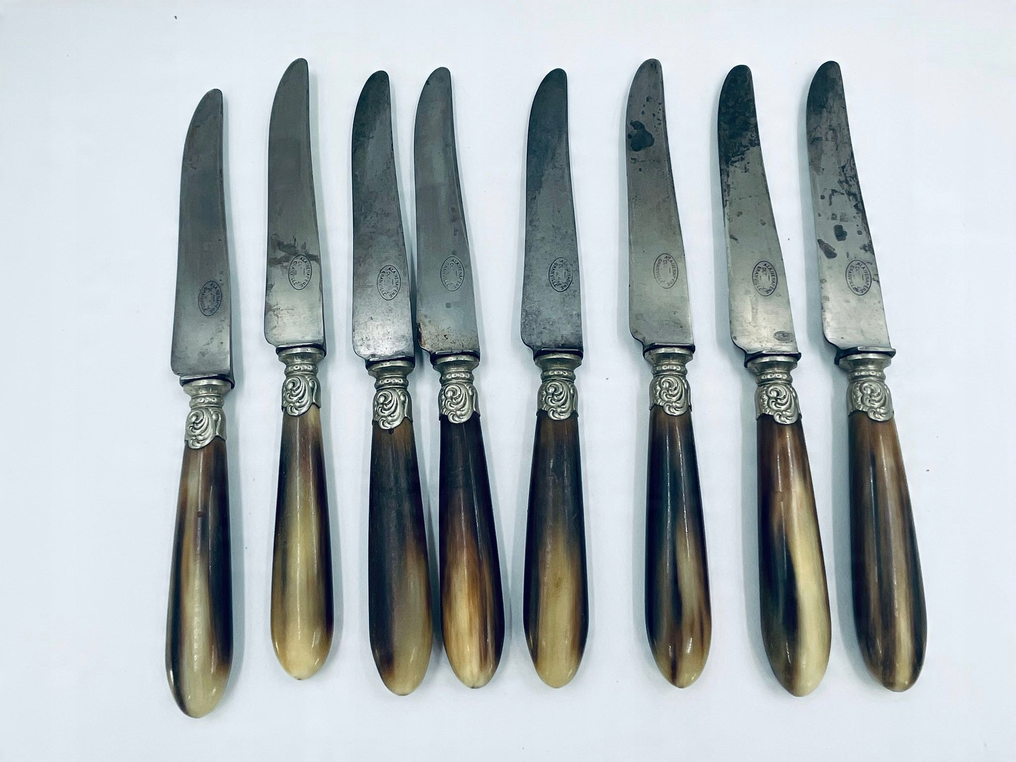 Набор из 8 старых исторических ножей 30 -х/40 -х годов, изготовленных из стали и ручки рога. 25 см