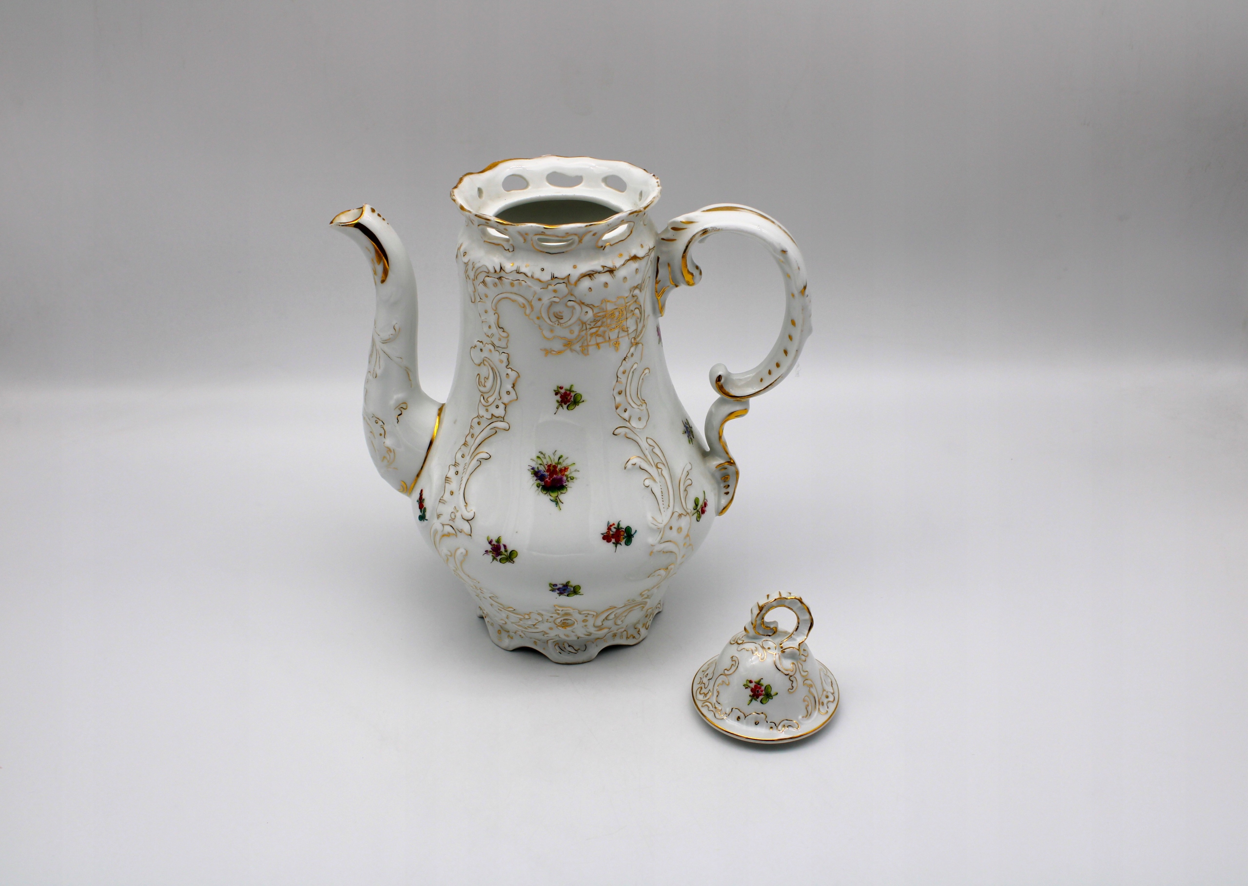 РЕКОМЕНДУЮ СТАРЫЙ АНТИКАРНЫЙ ФАРФОРОВЫЙ КОФЕ - ЧАЙНЫЙ КУВШИН CARL TIELSCH ALTWASSER - STARY ZDRÓJ STARY SLĄSK, ОТДЕЛЕННЫЙ ВРУЧНУЮ РАБОТУ, ИЗГОТОВЛЕННЫЙ В МЕЖДУ 1875 - 1900 ГОДАМИ ** СОСТОЯНИЕ ТАКОЕ, КАК ЕЕ 149 ЛЕТ, ТОЛЬКО НАТУРАЛЬНЫЕ ВРЕМЕННЫЕ ИЗДЕЛИЯ К КРАСКЕ И ПОЗОЛОЧЕНИЕ 100% ОРИГИНАЛ