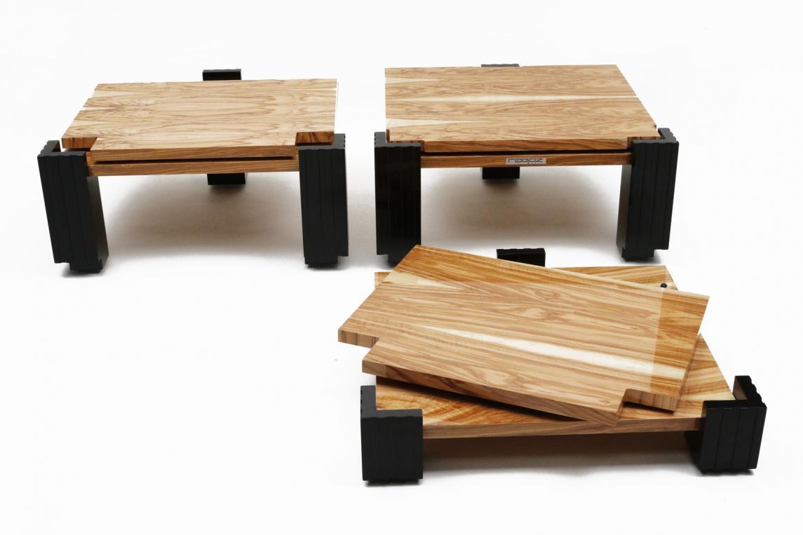 Антивибрационные столы предназначены для аудиокомпонентов высокого класса. В их конструкции используется новая антивибрационная система компании BBS (Balancing Board System). Система состоит из конуса из высокоуглеродистого стального сплава, снабженного резьбой, позволяющей регулировать высоту, на котором размещены два элемента – каждый с внутренней станиной. Промежуточный (средний) элемент изготовлен из углеродного полимера и поддерживает следующую деталь – стальную станину, заделанную в столешницу. Точечный контакт между стальным конусом и углеродным промежуточным элементом не позволяет этим двум элементам перемещаться относительно собственной оси, но допускает качательное движение. Однако контакт между промежуточным элементом и станиной, установленной в столешнице, допускает ограниченное движение качения и скольжения. Отсюда преимущества точечной опоры на конусах (после минимизации контактной поверхности кинетическая энергия преобразуется в тепловую энергию - энтропию) с эффектами гашения колебаний за счет трения скольжения и сопротивления качению. Система BBS защищена Польским патентным ведомством P.404137.