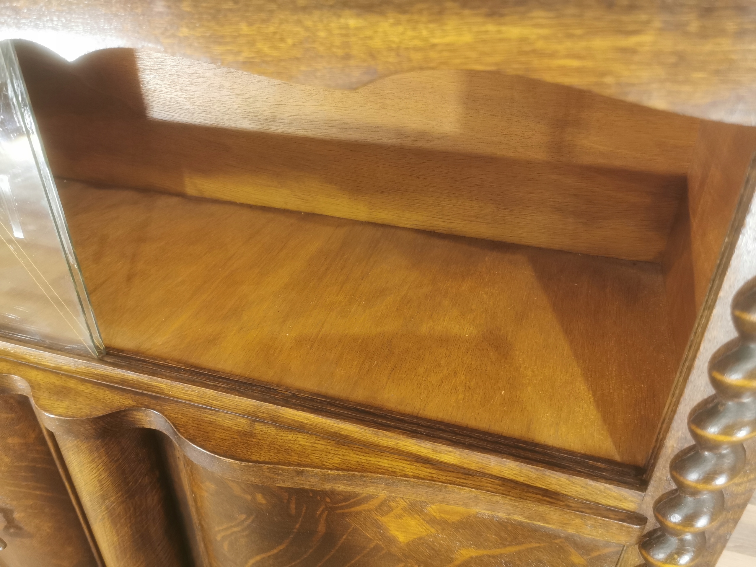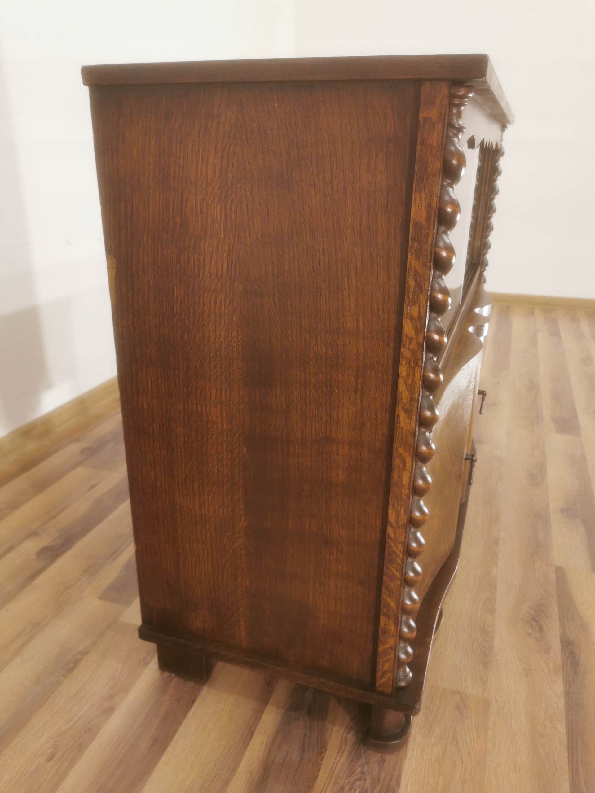 В комоде есть прямоугольная столешница, под которой есть застекленная веб -сайт с двумя красивыми дверью. Мебельный шкаф.