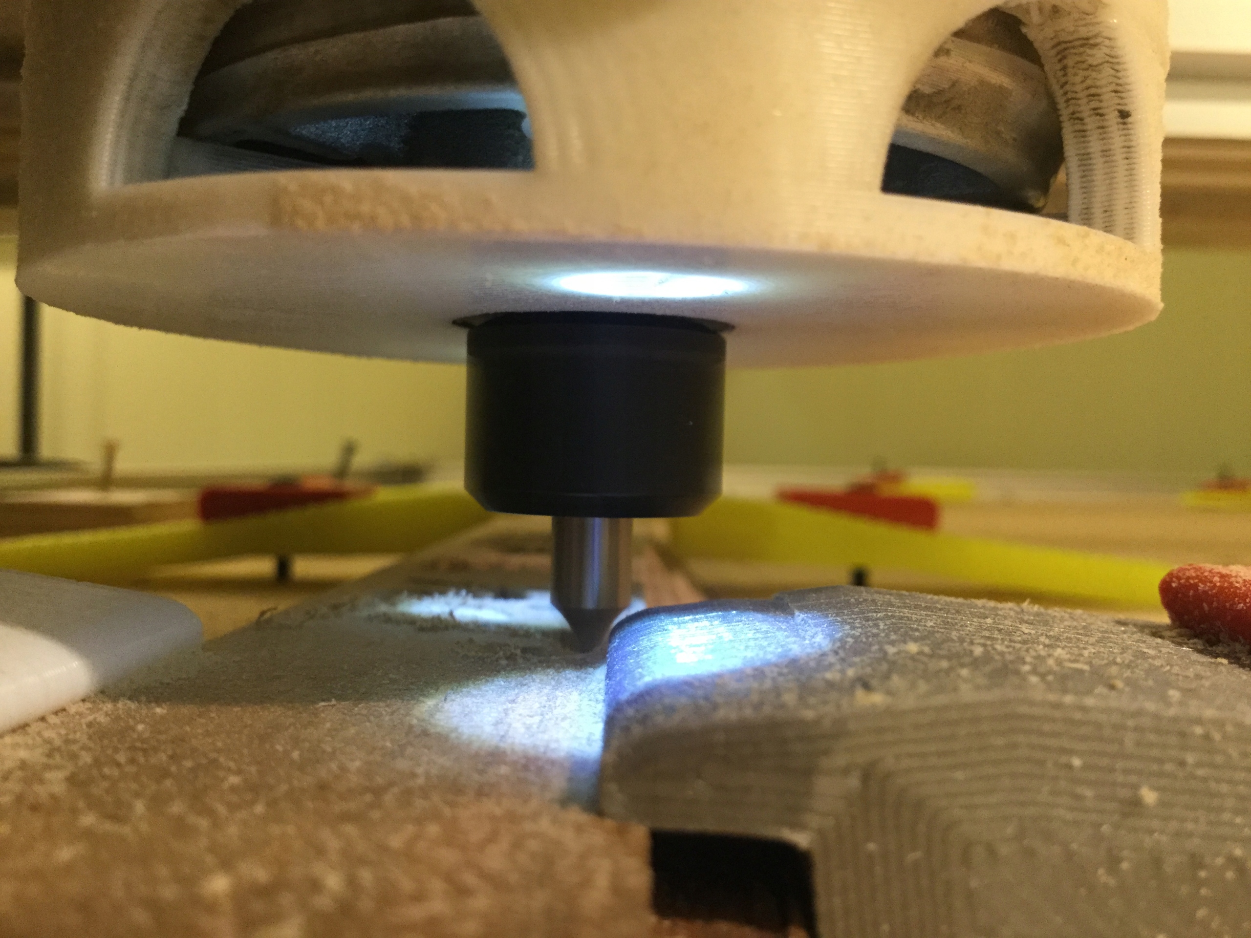 Зажим изготовлен из пластика, поэтому случайное вождение фрезой не вызывает искр и не представляет пожароопасности.