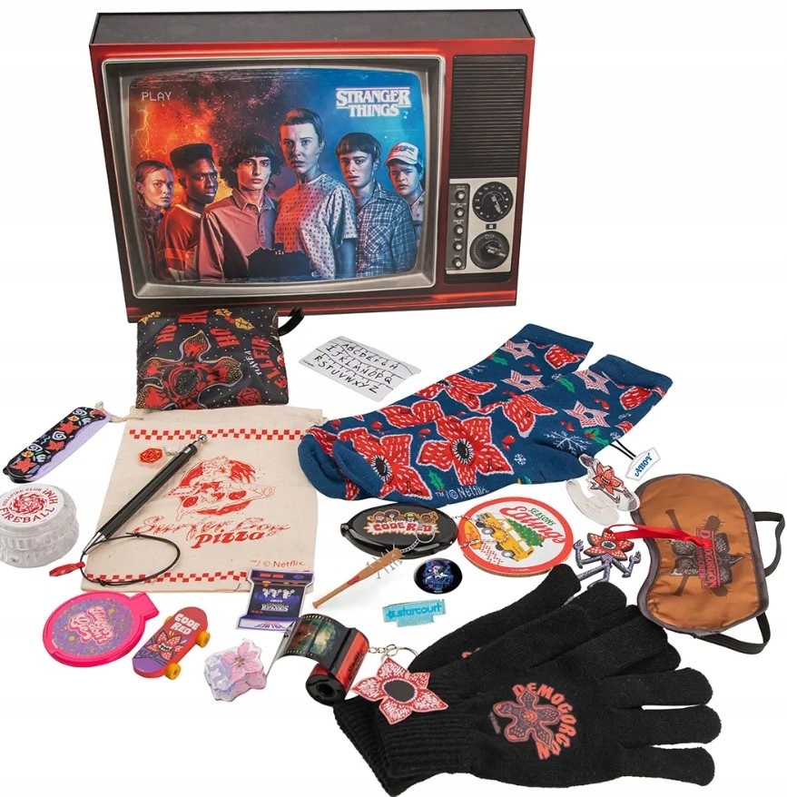 Каждый подарок посвящен самым важным моментам сериала и любимым персонажам, от Одиннадцати до загадочной Векны. Дополнительным преимуществом календаря является необычный корпус в виде телевизора, двояковыпуклая крышка которого меняет сцену с друзей на опасную Векну, перенося атмосферу Upside Down прямо в ваш дом.