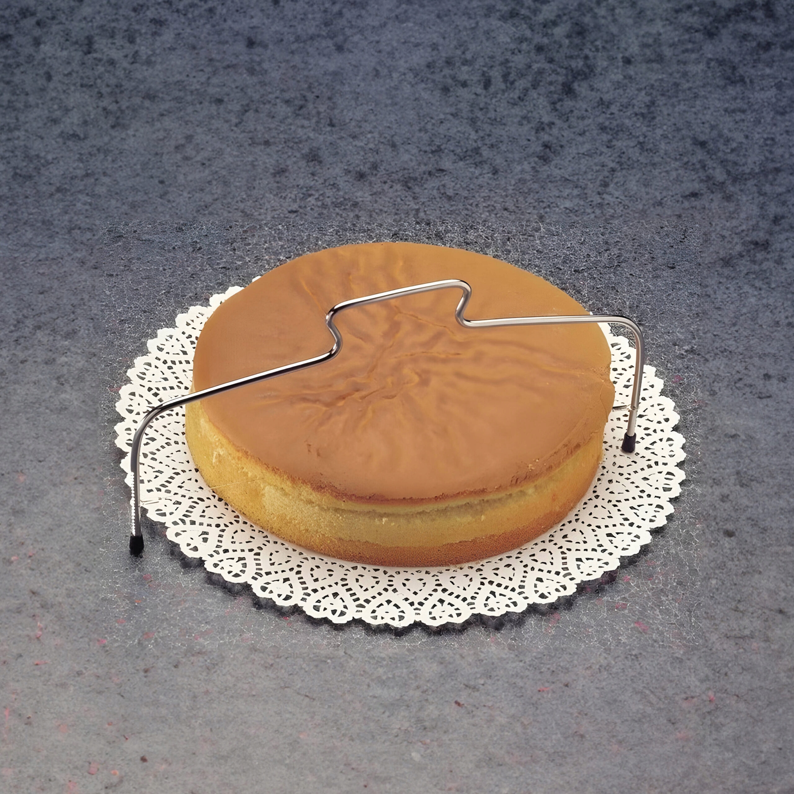 Мы представляем струнный нож с двумя струнами для разрезания губчатого торта. Нож благодаря тому, что разрезание теста или губчатого торта не будет