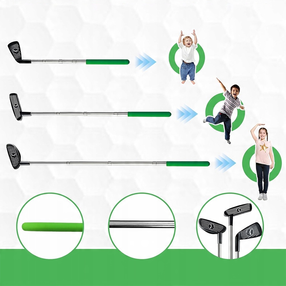 Пусть малые гольфы практикуются и улучшают идеальное убийство с помощью водолазки клеме. Рекламный лейбл подражает профессиональной палке, чтобы продвигать правильную технику убийства и предоставить детям реалистичный опыт игры в гольф. Каждая палочка для гольфа для малышей имеет регулируемую длину, чтобы убедиться, что отдельное совпадение с детьми в возрасте от 3 до 7.
