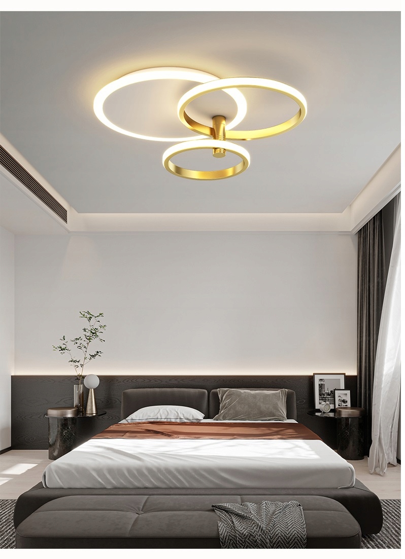 - Минималистский геометрический дизайн с пятью кольцами сделает вашу комнату модной и просторной. Люстра изготовлена из металла, изящная и яркая подсветка, изысканная декоративная атмосфера добавляет порядка и хорошего настроения.