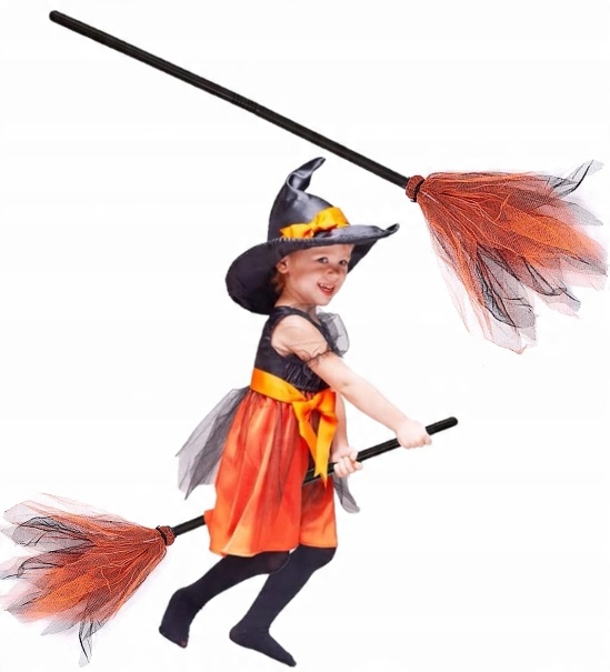 ПЛАТЬЕ НА ХЭЛЛОУИН НАряд ВЕДЬМЫ БАБА ЯГА ПАТКА ОРАНЖЕВАЯ 104 128 СМ (с этикеткой L) МЕТЛА