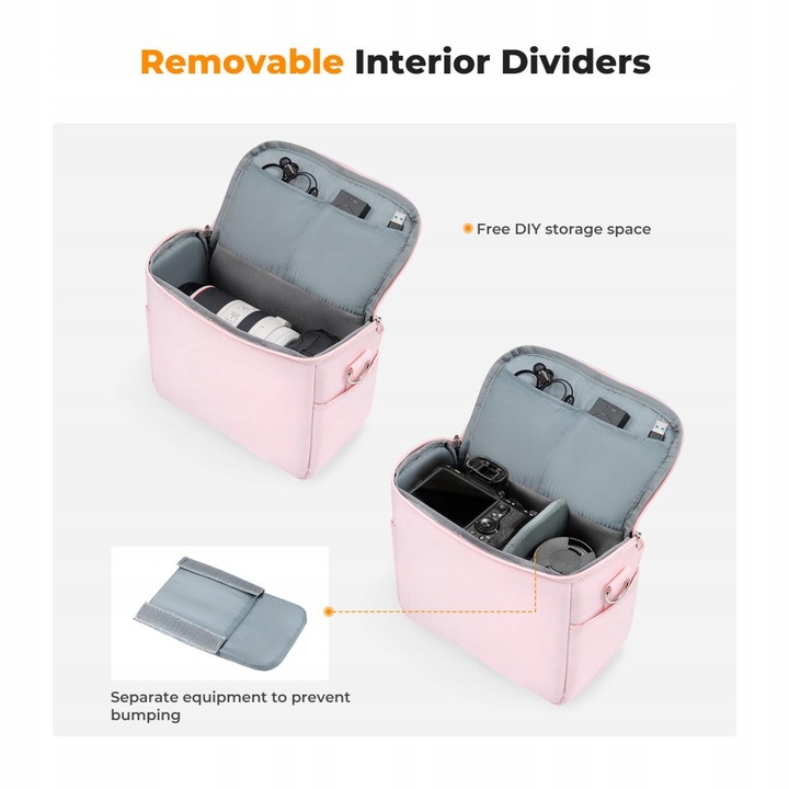 Вы можете поместить в сумку Фотографическое оборудование , полезное, например, во время коротких поездок или осмотр достопримечательностей Разделение , что мешает вам сбивать различные аксессуары внутри сумки