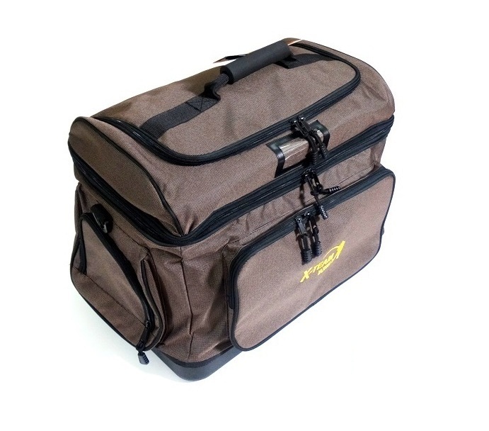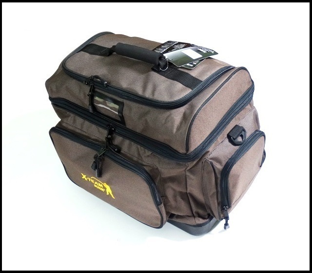 рыболовная сумка с жестким дном, которое защищает от замачивания. Удобные, просторные, боковые карманы, верхний хранение и передний карман. Короткий и длинный ремень (не включен в картинку). Размеры: 50 x 38 x 38 cm.