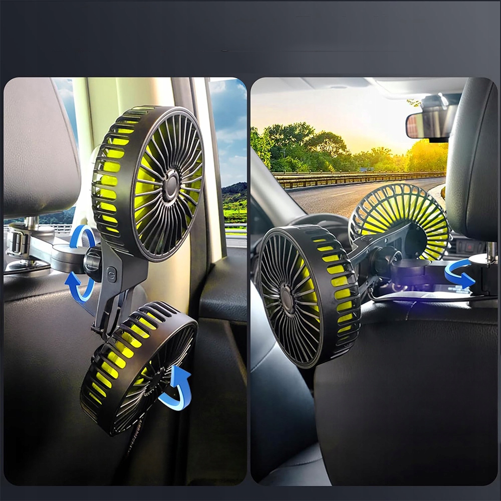✅✅ Роторная конструкция с двумя головками 360 ° - Наш вентилятор автомобиля с двумя головами предлагает полное вращение, обеспечивая освежающий ветерок, достигающий каждого угла заднего сиденья. Идеально предоставить пассажирам, животным и детям комфорта во время вождения.
