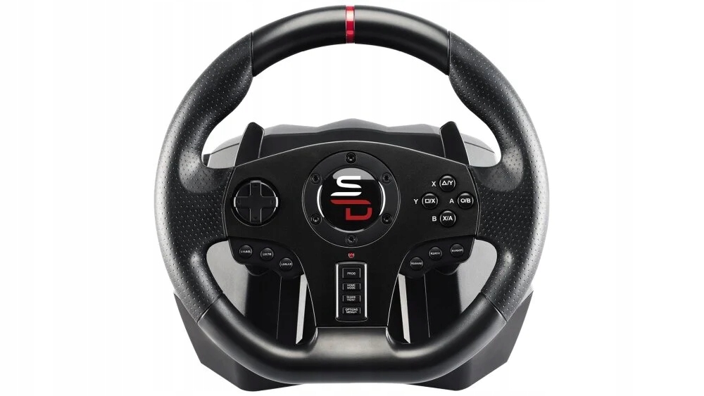 Дозвуковое гоночное рулевое колесо SV 850-отличный инструмент для ультрареалистичного опыта во время гоночных игр. Благодаря углу вращения на 270 градусов, рулевое колесо 28 сантиметра, двигатель двойной вибрации и три уровня нежности, он гарантирует незабываемое впечатление