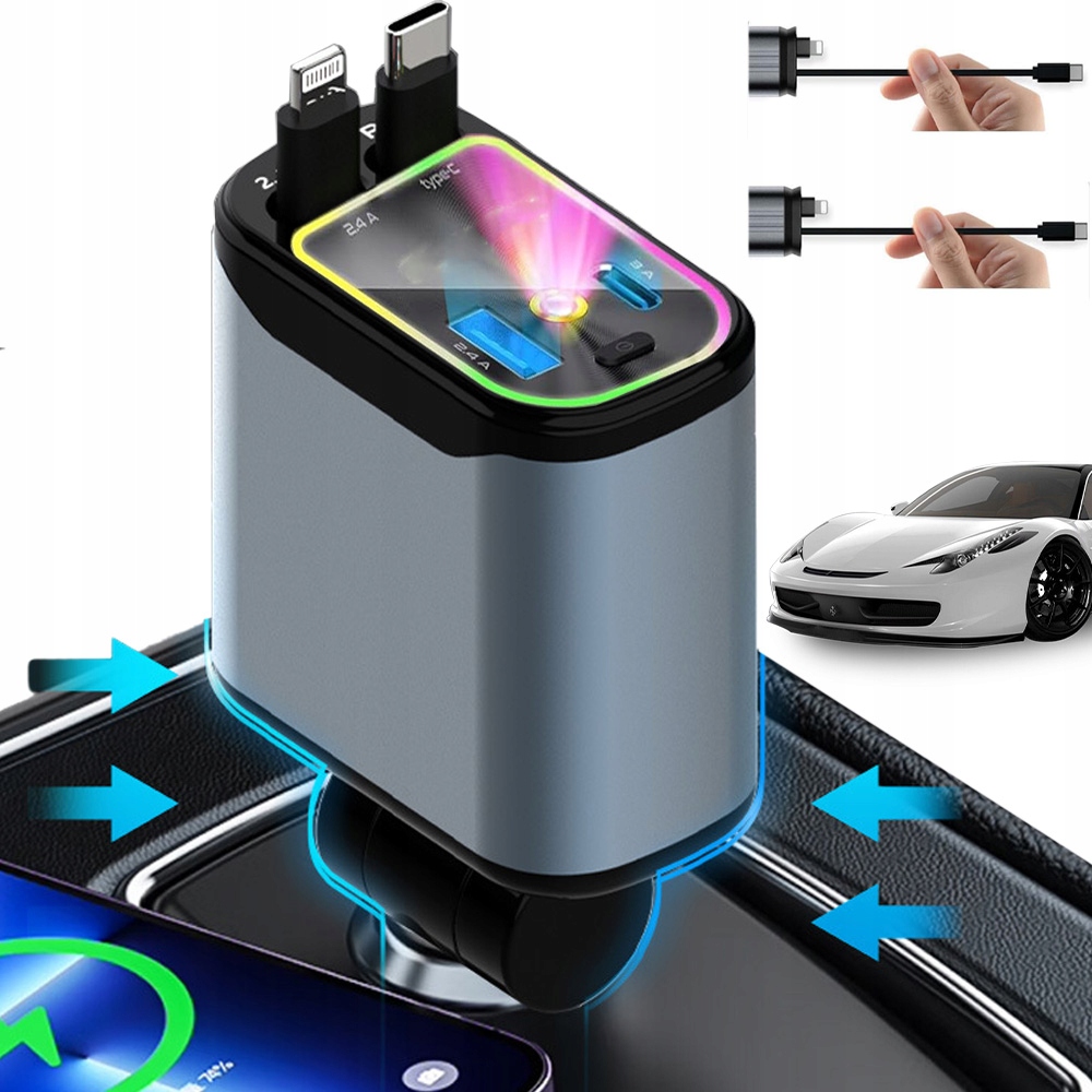 СУПЕР БЫСТРОЕ АВТОМОБИЛЬНОЕ ЗАРЯДНОЕ УСТРОЙСТВО 4IN1 PD QC 3.0 ДЛЯ ЗАЖИГАЛКИ С ЛАМПОЙ