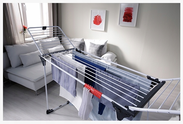 - Благодаря повышенной раме, сушилка позволяет вам сушить длинные вещи, такие как куртки или платья.