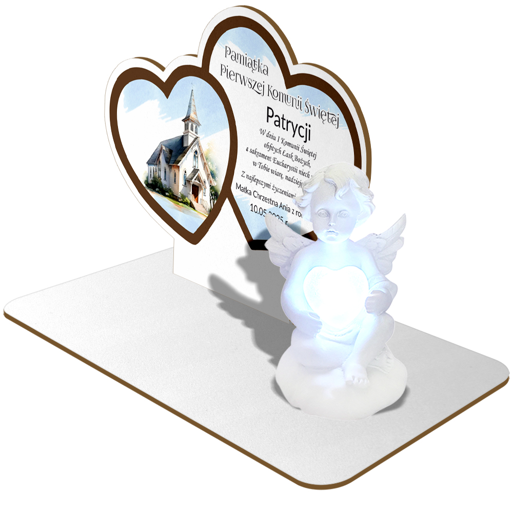 сувенир для первого святого причастия с ангелом и сияющим сердцем + собственная посвящение