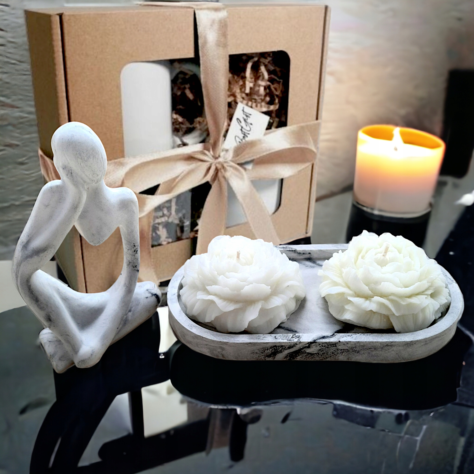 Свічки з квітами півонії (Піон) + абстрактна фігурка Мислячої людини