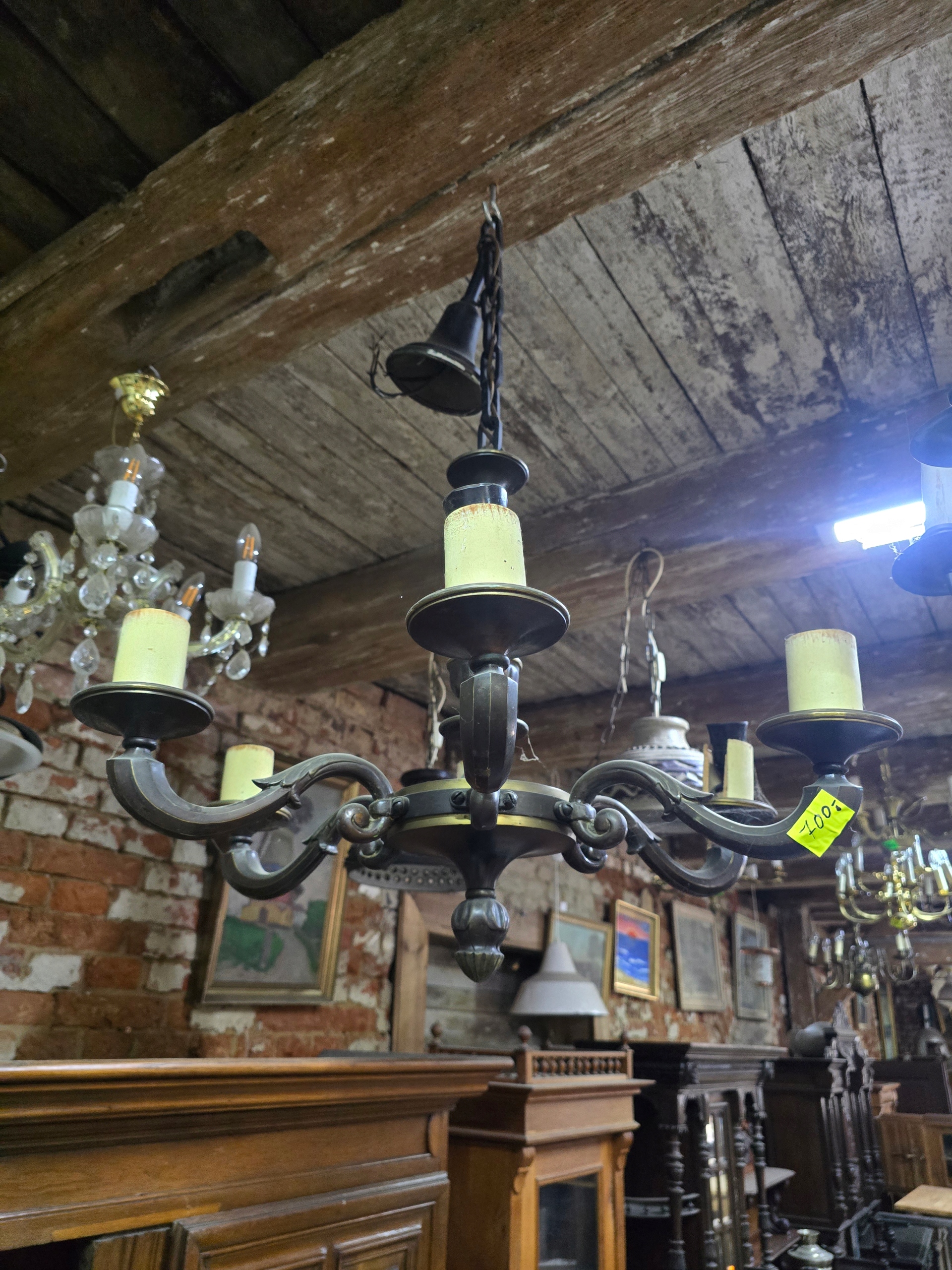 Свічник-люстра-павук з важкої литої бронзи та латуні, 1930-ті роки