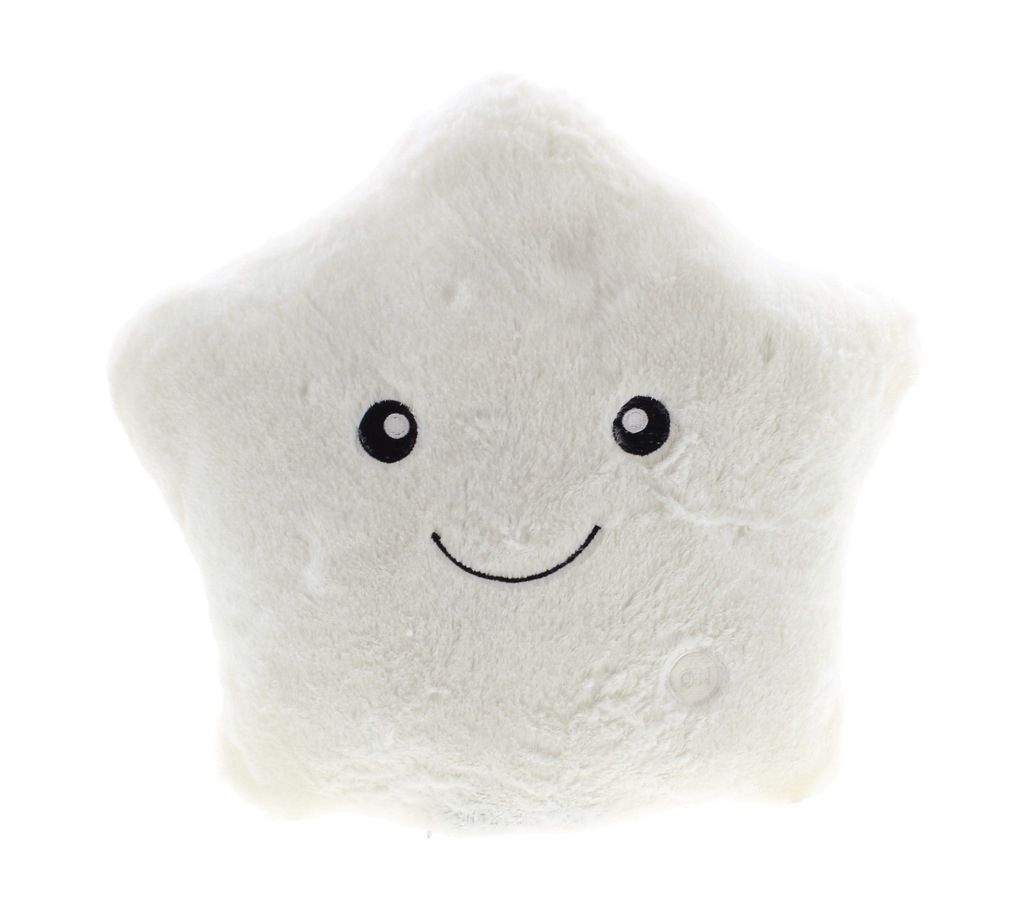 Внутри подушки расположены светодиоды, которые светятся разными цветами. Идеальна в качестве ночной подушки для детей, которые боятся засыпать в темноте.