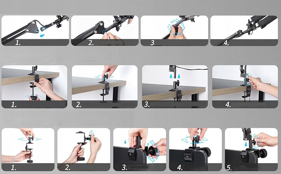 - ✅【Идеальный дизайн с двойной головкой】: Лампа с гусиной шеей и складным кронштейном с двойной головкой и широкий зажим. Для работы вы можете регулировать направление световой головки по своему усмотрению. Регулируемый на 180° кронштейн на гибкой стойке обеспечивает большую площадь освещения. Вращающееся на 360° основание (после отвинчивания ручки) позволяет устанавливать светильник в разных направлениях. Металлический зажим оснащен силиконовыми накладками, поэтому нет риска опрокидывания.