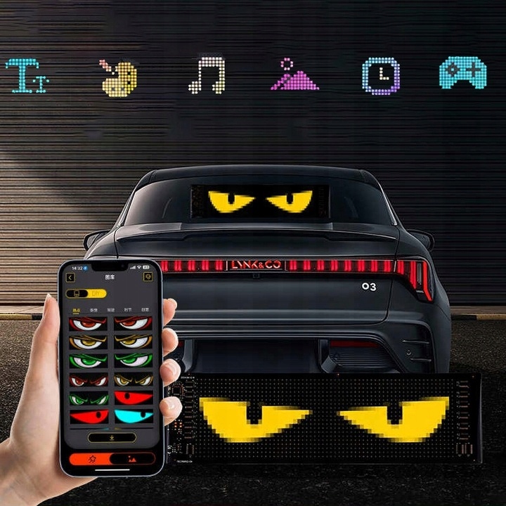 Интеллектуальная безопасность: Эта светодиодная (одиночная) панель состоит из 512 светодиодных RGB. Плавно контролировать этот программируемый светодиодный автомобильный знак, используя мобильное приложение, которое постоянно обновляется новым контентом, обеспечивая бесконечное веселье. Светодиодная марка питается на 5 В USB, благодаря которой он имеет чрезвычайно низкое тепло, низкое потребление энергии, прикосновение и безопасность во время использования.