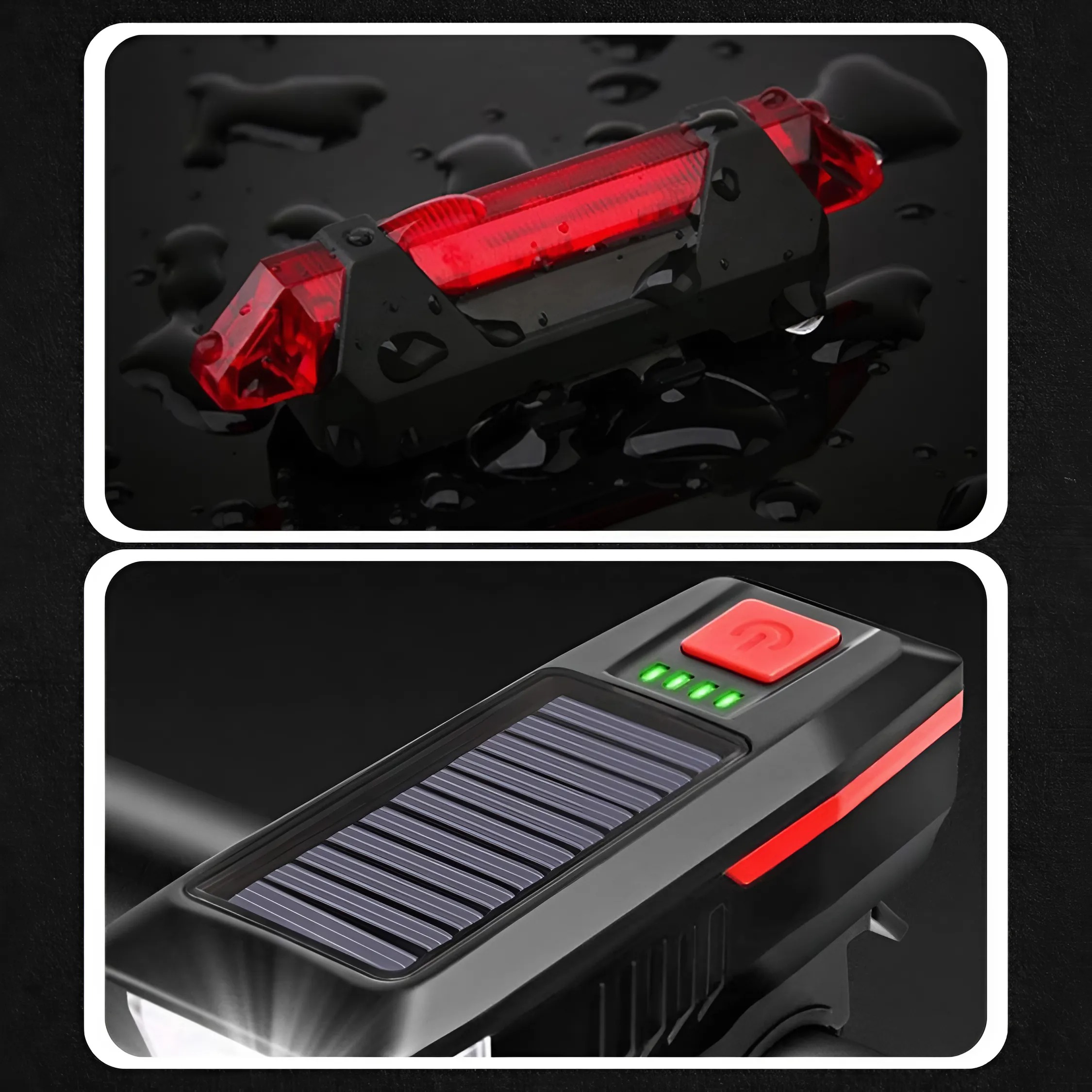 Набор передней и задней лампы со встроенной солнечной панелью, режима рога и освещения, адаптированные к различным условиям, сделают вашу поездку безопасной, удобной и без проблем -независимо от погоды и времени суток. Интегрированная USB и солнечная зарядка является гарантией действий, когда вам это нужно.