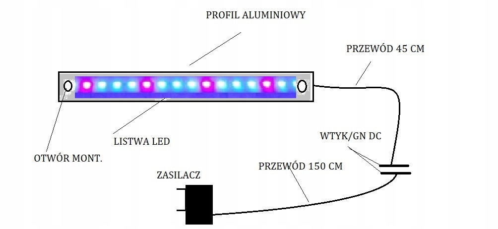 СВЕТОДИОДНОЕ ОСВЕЩЕНИЕ 100 СМ. В АЛЮМИНИЕВОМ ПРОФИЛЕ С БЛОКОМ ПИТАНИЯ, ГОТОВЫЙ К УСТАНОВКЕ