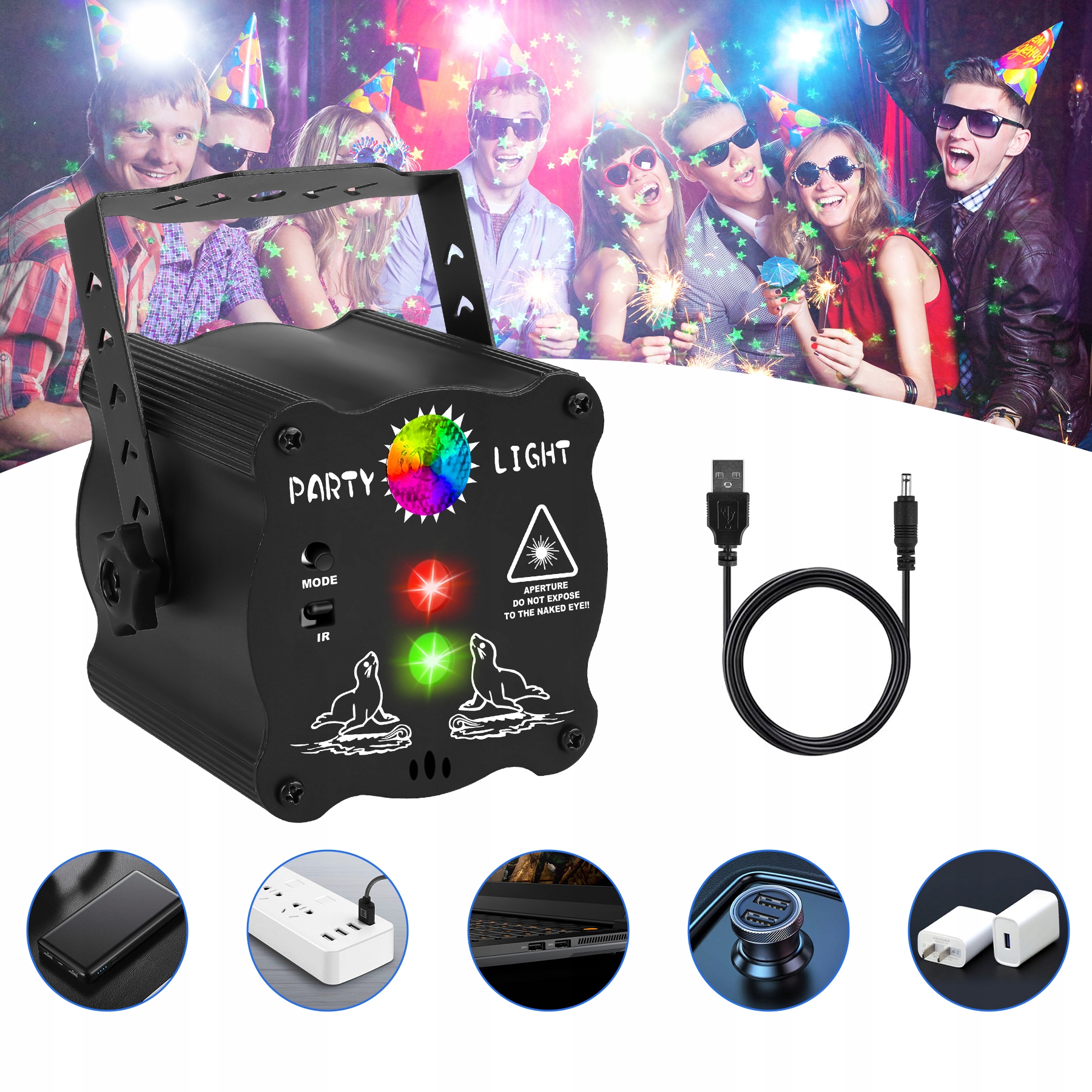 светодиодные партийные лампы имеют 60 различных дизайнов в трех световых комбинациях (красный, зеленый, красный, зеленый) и семь красочных фонов (красный, зеленый, синий, желтый, голубой, пурпурный и черный свет). Огни и фон могут быть свободно включены или выключены, такая комбинация многих эффектов создает более трехмерную атмосферу и прохладные сцены и испытывает необычные эффекты света!