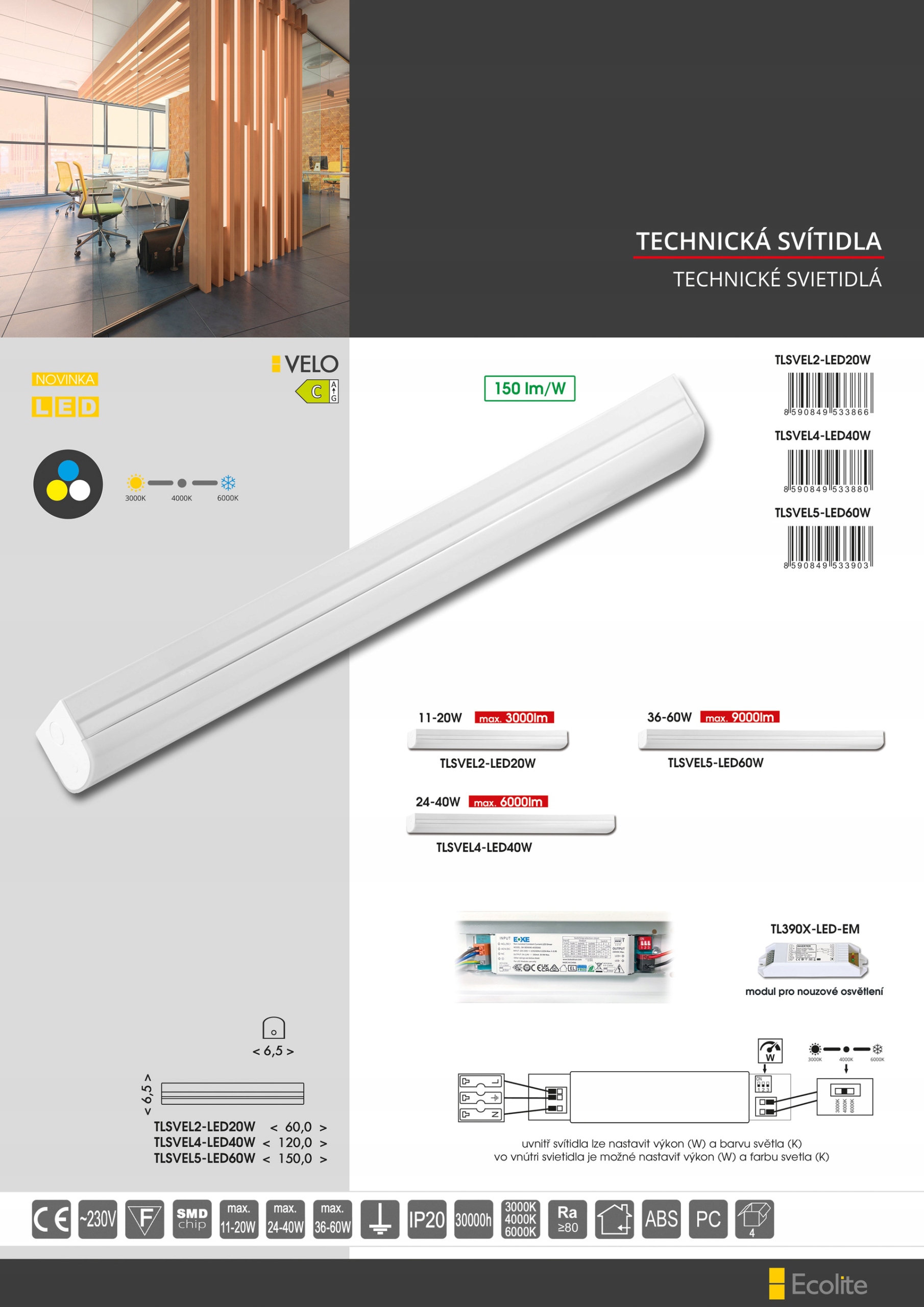 Размеры: 120 x 6,5 x 6,5 см, Питание [В]: 220–240, Макс. Мощность [Вт]: 24-40, Цвет света: белый, Цветовая температура [K]: 4000, Материал: поликарбонат, Цвет товара: белый, Уровень защиты IP: 20, Класс защиты: I, Индекс цветопередачи [Ra]: 80, Световой поток [лм]: макс. 6000, Тип источника: SMD LED, Срок службы [ч]: 30000 Установлен Светодиодный светильник VELO впечатляет своей универсальностью и высокой эффективностью. С помощью DIP-переключателей можно регулировать не только необходимую мощность (Вт), но и цветовую температуру в значениях 3000/4000/6000К. Будет использоваться в качестве технического светильника в коридорах, офисах и магазинах. Срок службы блока питания составляет около 30 000 часов, класс защиты IP20.