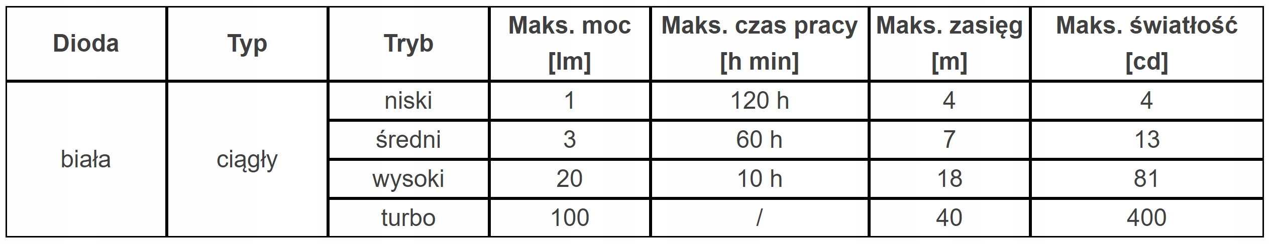 - Белый светодиод с максимальной мощностью потока 100 лм.