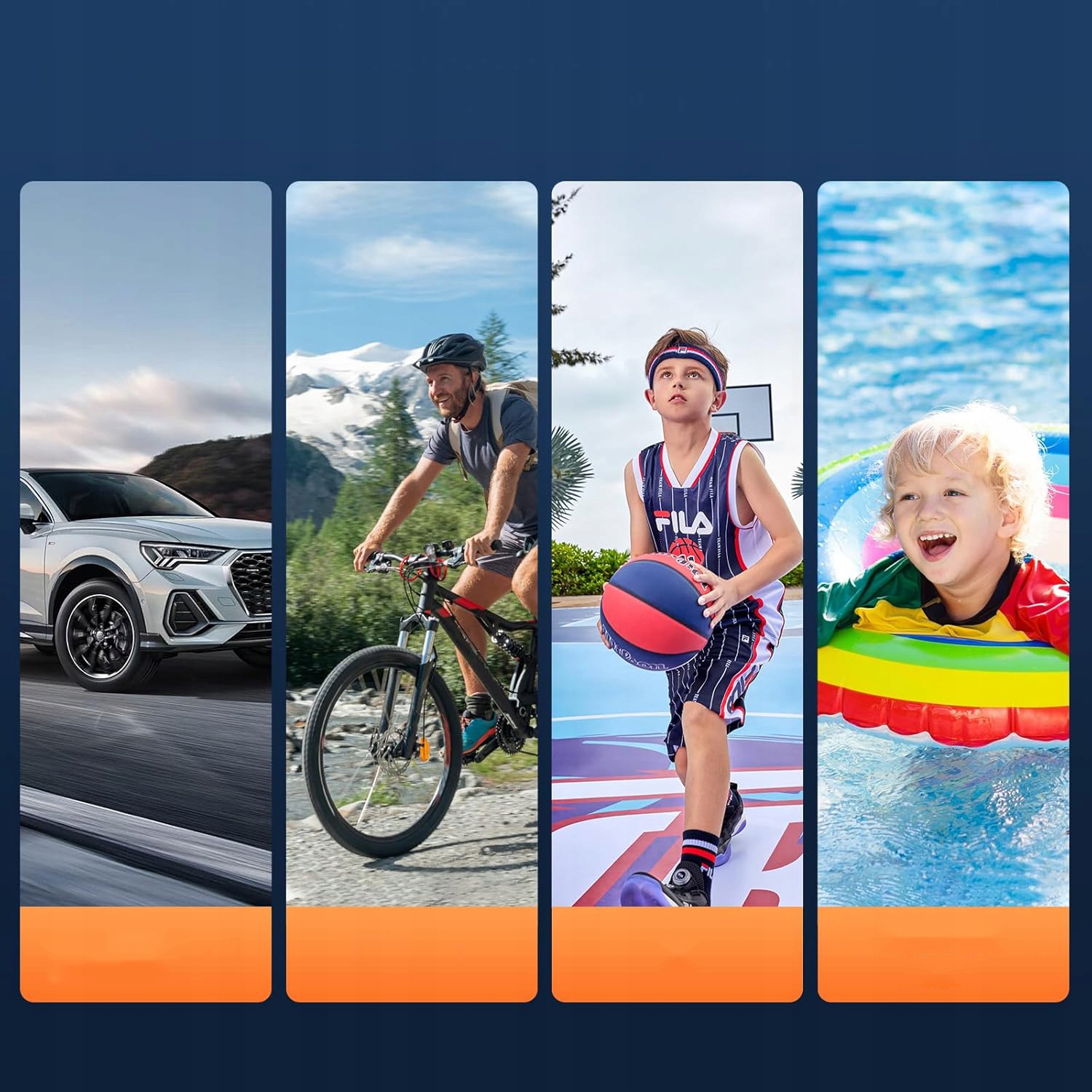 Наш воздушный компрессор не маленький, и легко переносить и поместить в кадр или рюкзак. Шлав с высоким давлением облегчает перекачивание под каждым углом, в том числе во всех трудных направлениях. Портативная настройка шин оснащен 3 соплами и подходит для различных видов велосипедов, мотоциклов, автомобилей, шариков, плавательных колес и т. Д.