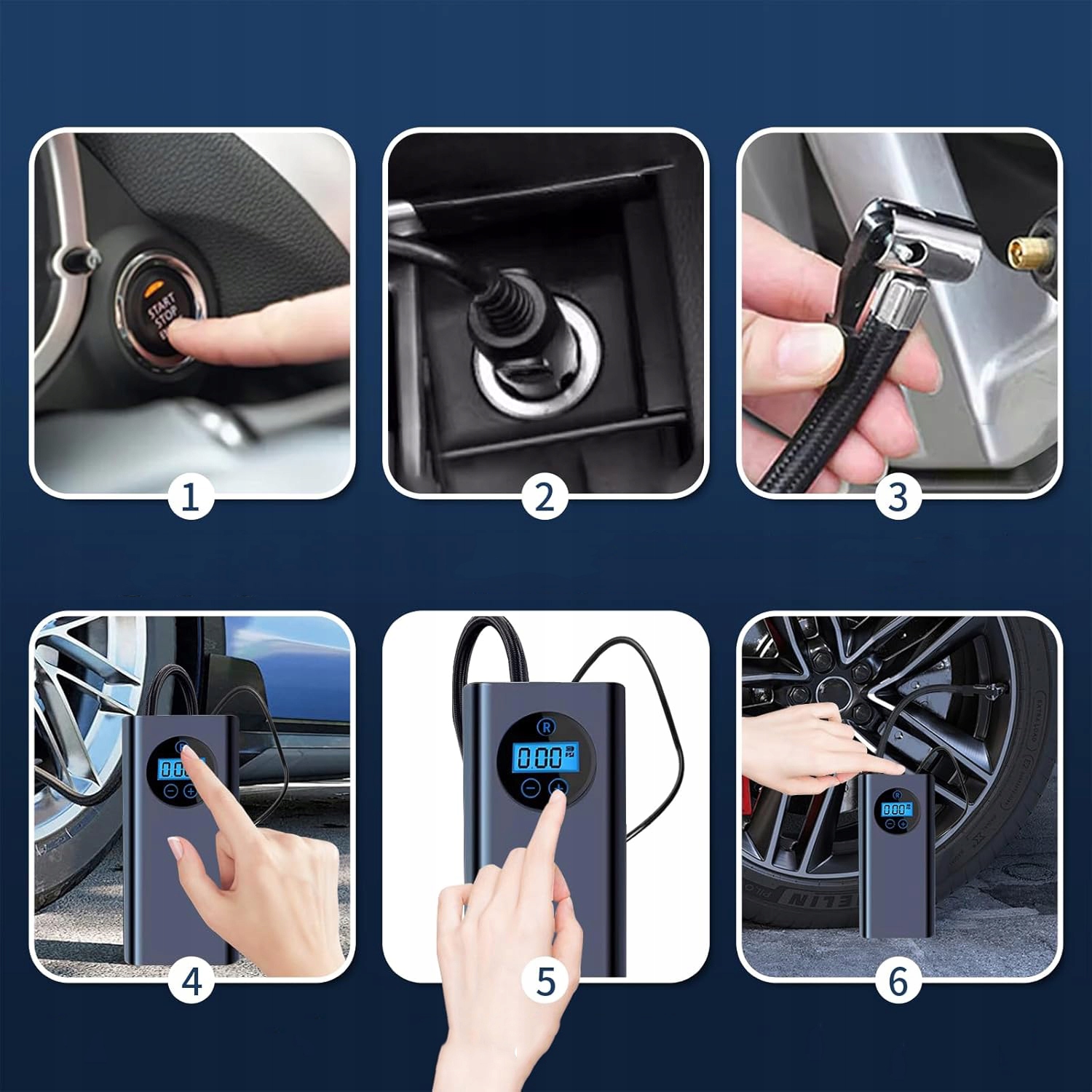 Портативный воздушный компрессор для накачивания шин использует последний 17-цилиндровый компрессор, который накапливается в два раза быстрее, чем другие обычные беспроводные пожилые люди и увеличивает мощность на 50%. Точность ± 1 кв.
