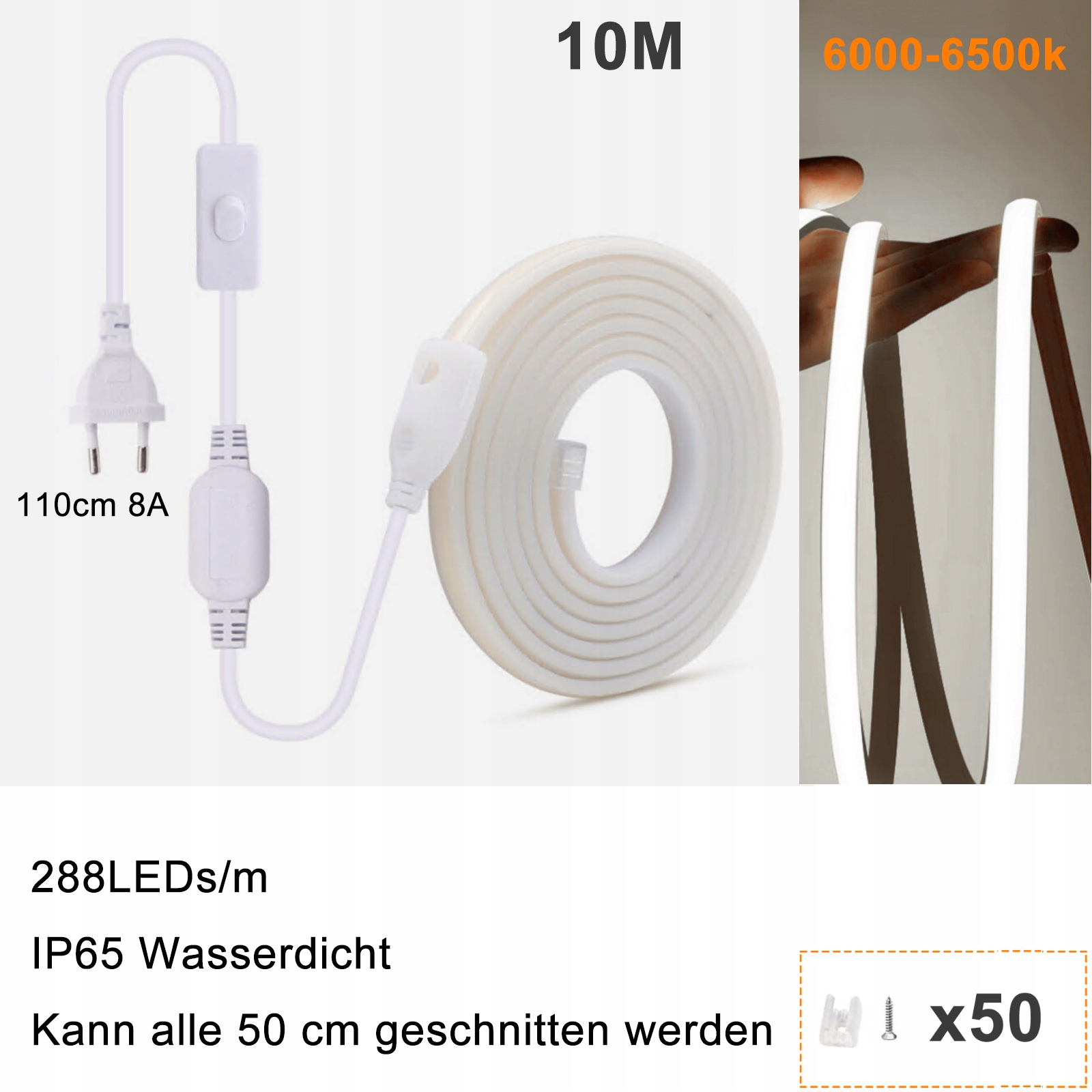 Светодиодный Neon Cob 220V 10M 6500K White Нейтральный водонепроницаемый IP65 12 мм