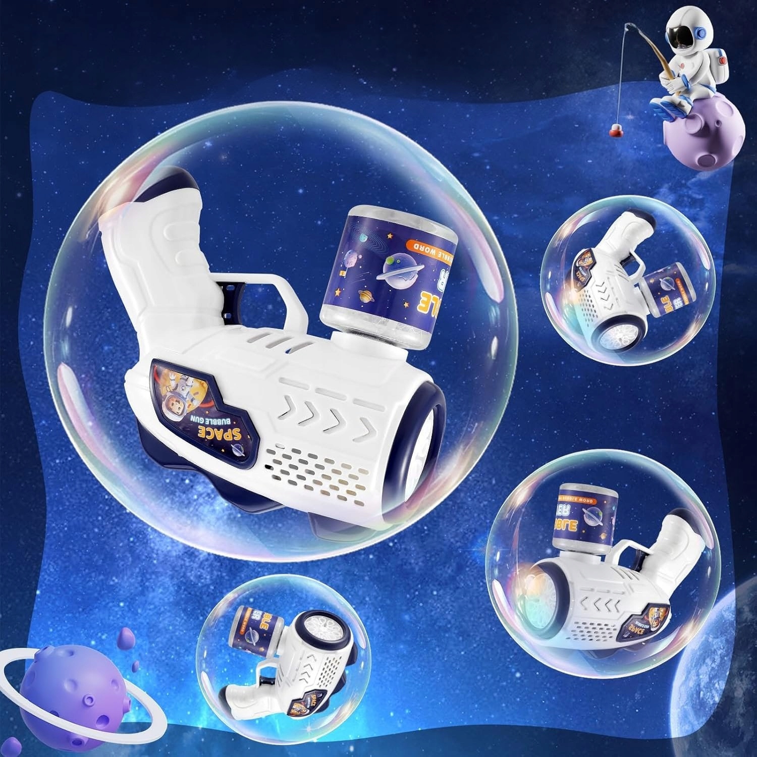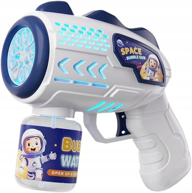 Светодиодный пистолет для мыльных пузырей | Автоматический, с магазином на 90 мл + сменным блоком.